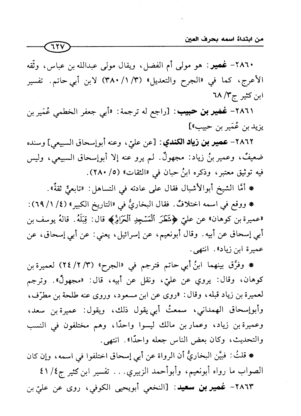 2860 - عُمير: هو مولى أم الفضل، ويقال مولى عبد الله بن عباس، وثّقه الأعرج، كما في "الجرح والتعديل" (3/ 1/ 380) لابن أبي حاتم. تفسير ابن كثير ج3/ 68