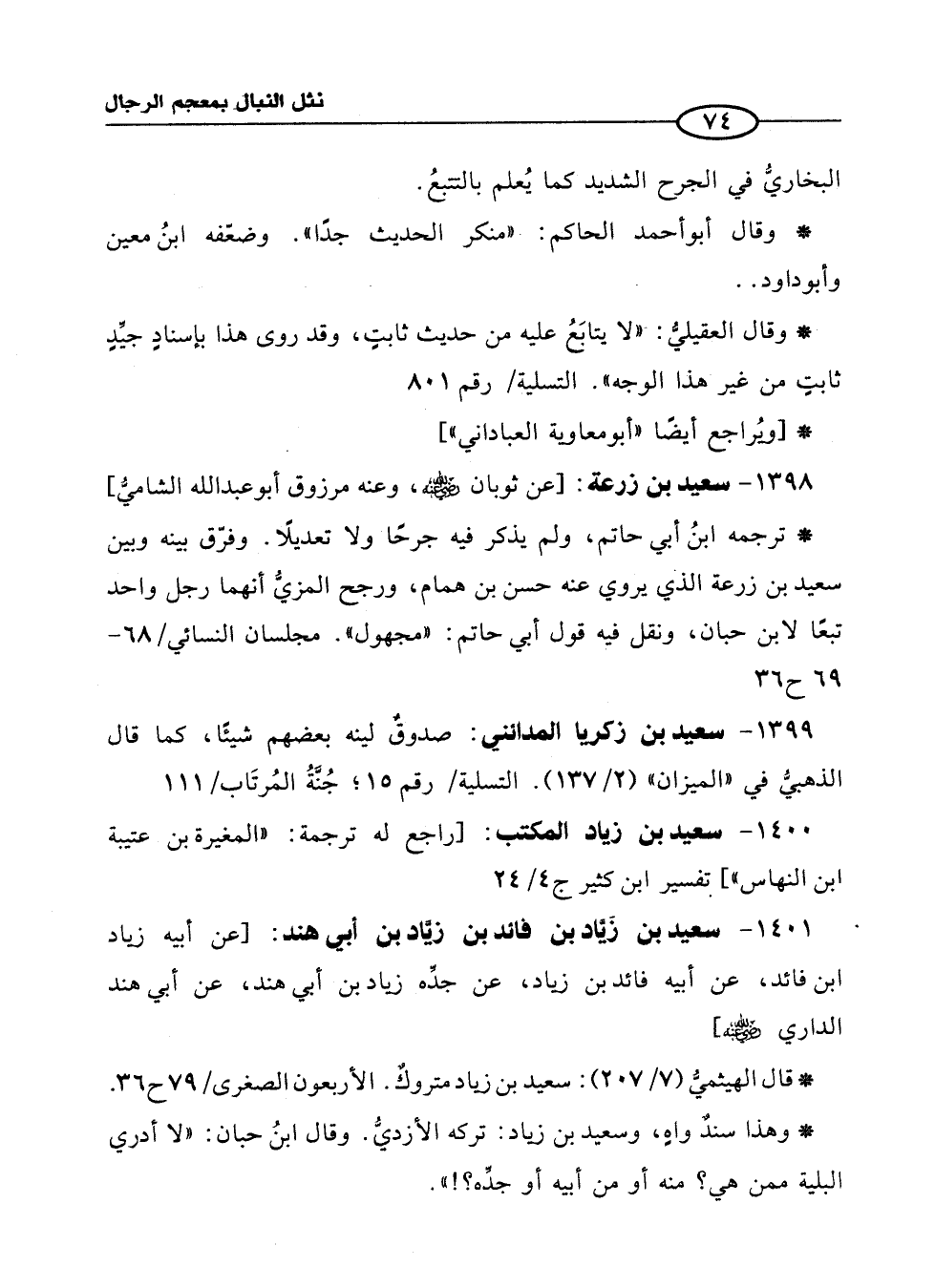 1400 - سعيد بن زياد المكتب: [راجع له ترجمة: "المغيرة بن عتيبة ابن النهاس"] تفسير ابن كثيرج 4/ 24