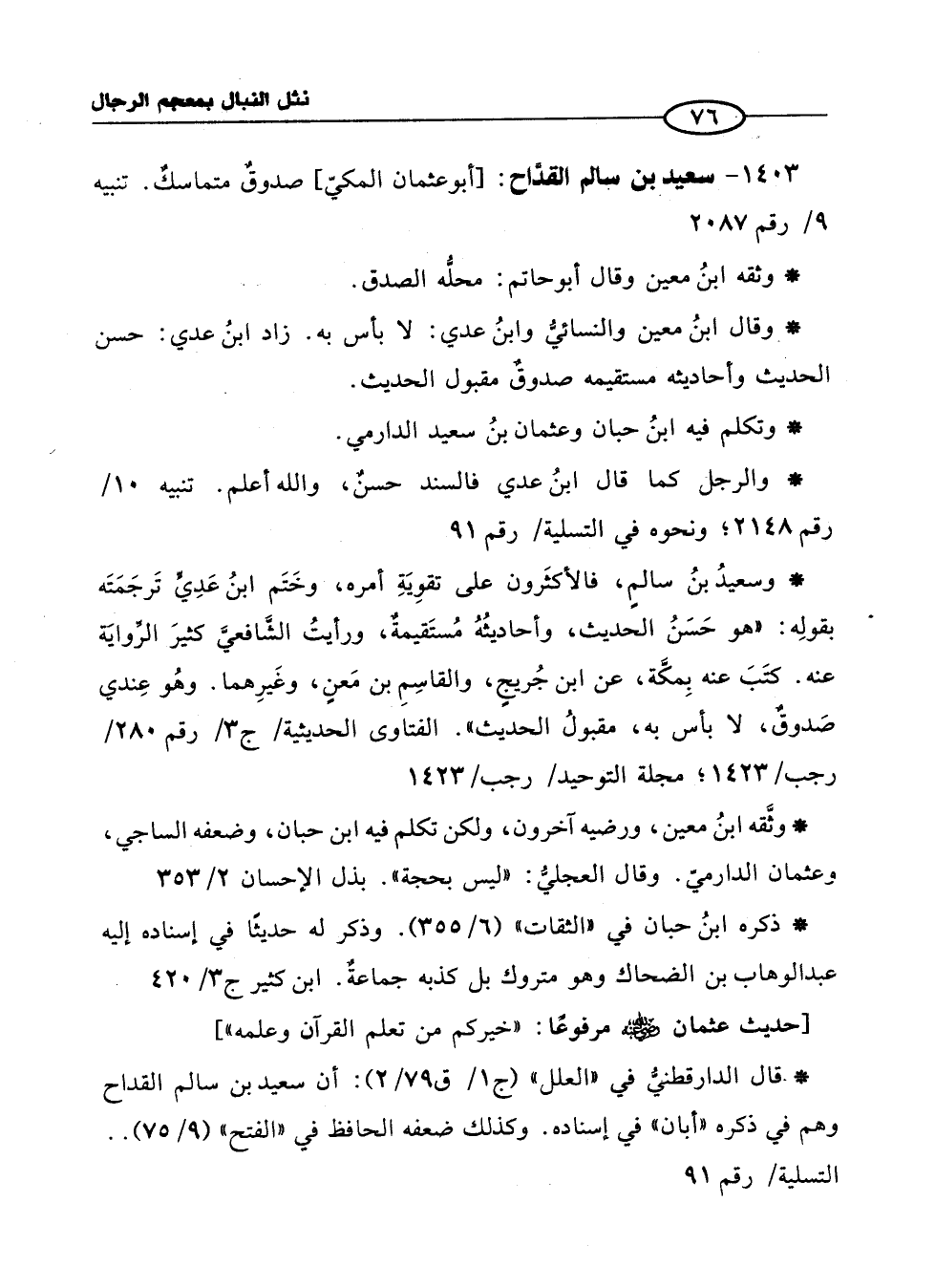 1403 - سعيد سالم القدَّاح: [أبو عثمان المكيّ] صدوقٌ متماسكٌ. تنبيه 9/ رقم 2087