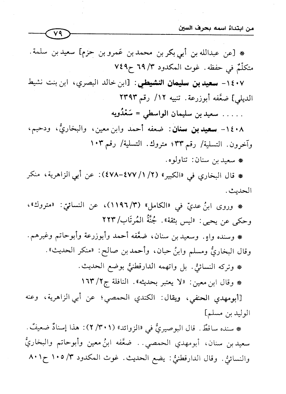 1407 - سعيد بن سليمان النشيطي: [ابن خالد البصري، ابن بنت نشيط الديلي] ضعَّفه أبو زرعة. تنبيه 12/ رقم 2393
