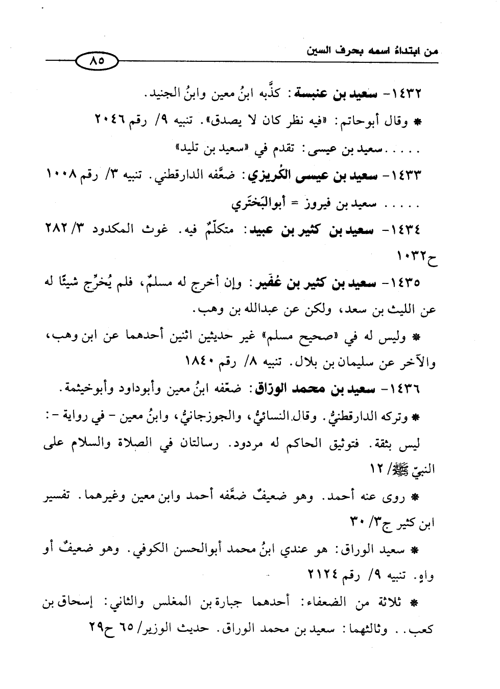 1432 - سعيد بن عنبسة: كذَّبه ابنُ معين وابنُ الجنيد.