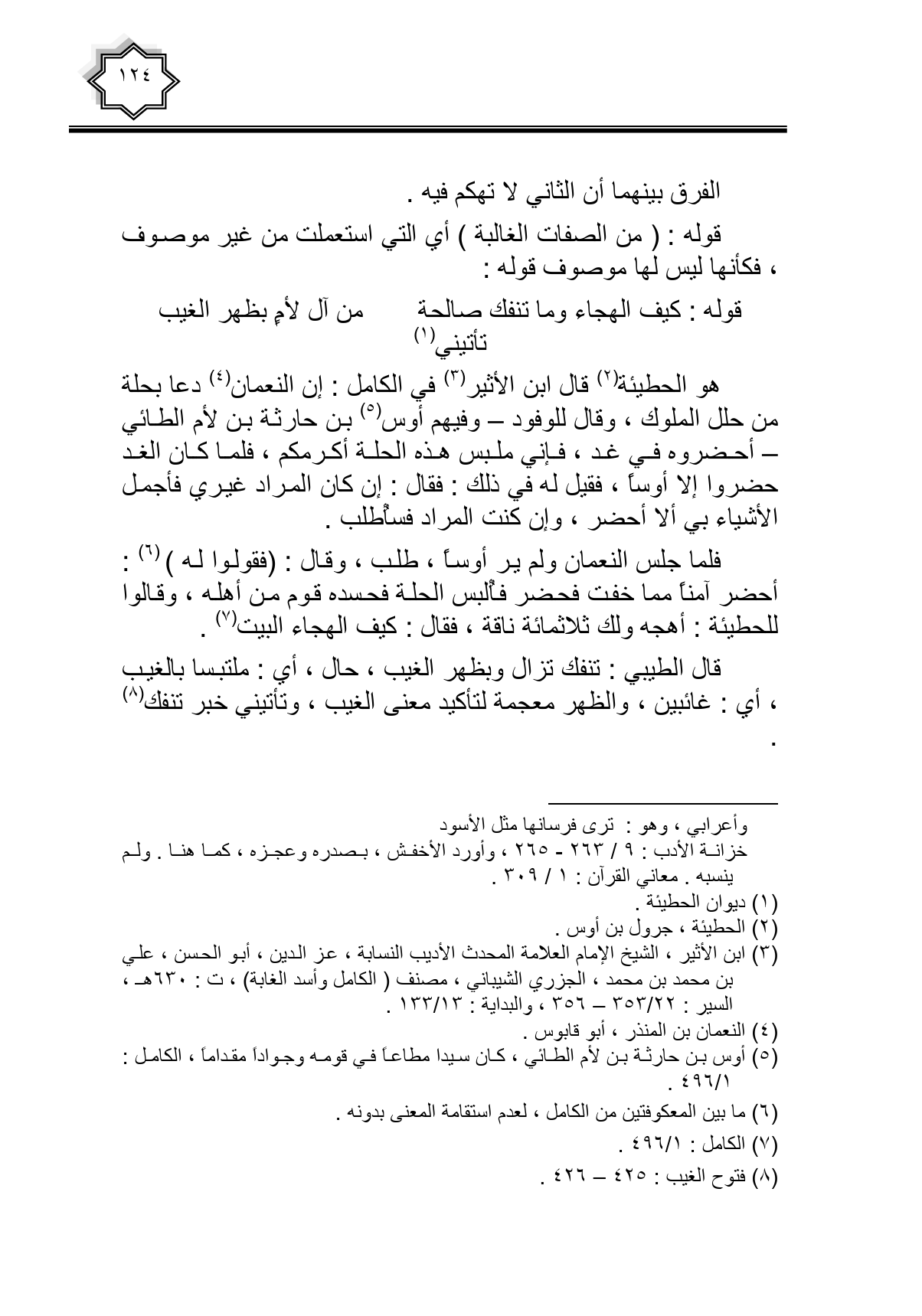 قوله: كيف الهجاء وما تنفك صالحة من آل لام بظهر الغيب تأتيني