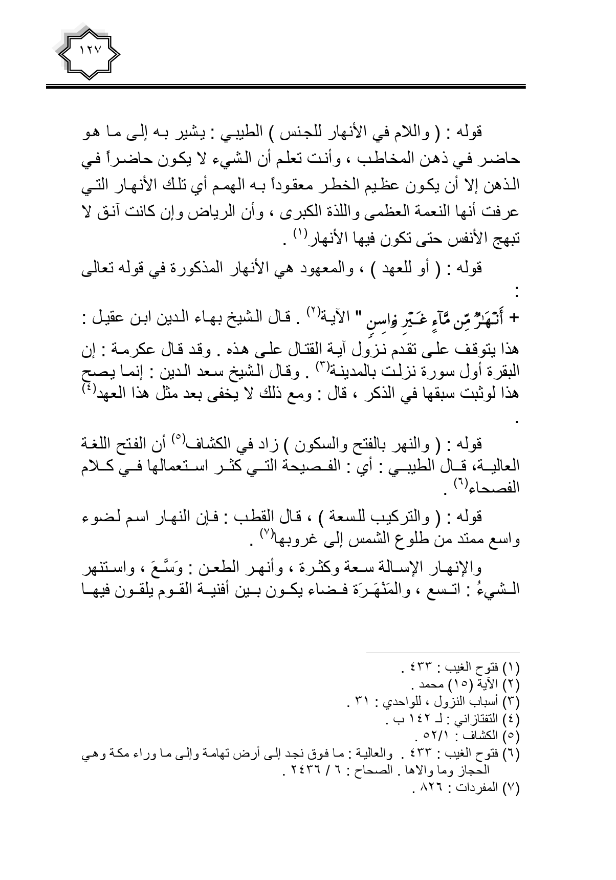 قوله: (والنهر بالفتح والسكون) زاد في الكشاف أن الفتح اللغة العالية، قال الطيبي: أي: الفصيحة التي كثر استعمالها في كلام الفصحاء.