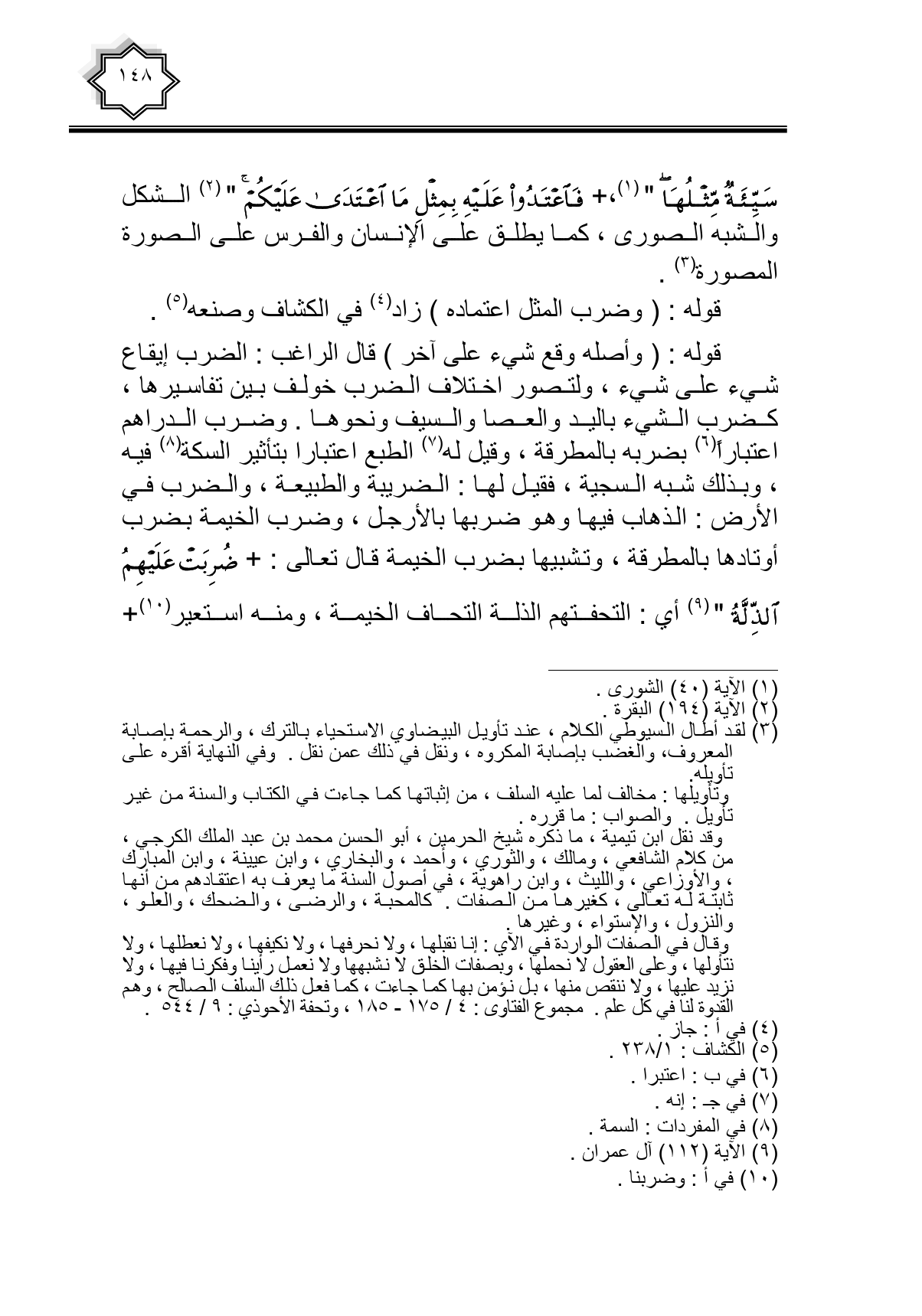 سَيِّئَةٌ مِثْلُهَا}، {فَاعْتَدُوا عَلَيْهِ بِمِثْلِ مَا اعْتَدَى عَلَيْكُمْ} الشكل والشبه الصورى، كما يطلق على الإنسان والفرس على الصورة المصورة.