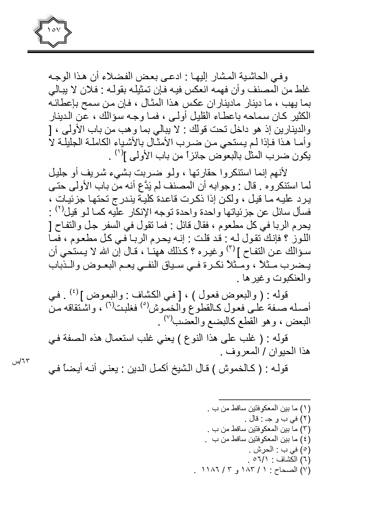 وفي الحاشية المشار إليها: ادعى بعض الفضلاء أن هذا الوجه غلط من المصنف وأن فهمه انعكس فيه فإن تمثيله بقوله: فلان لا يبالي بما يهب، ما دينار ماديناران عكس هذا المثال، فإن من سمح بإعطائه الكثير كان سماحه بإعطاء القليل أولى، فما وجه سؤالك، عن الدينار والدينارين إذ هو داخل تحت قولك: لا يبالي بما وهب من باب الأولى، [وأما هذا فإذا لم يستحي من ضرب الأمثال بالأشياء الكاملة الجليلة لا يكون ضرب المثل بالبعوض جانزا من باب الأولى].