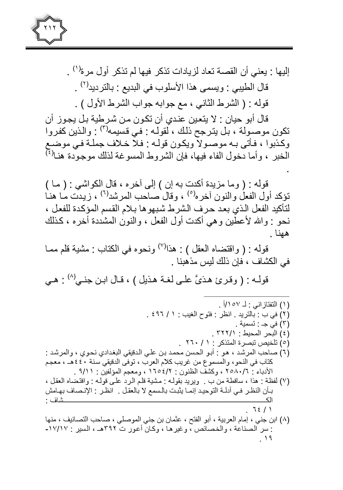 قوله: (الشرط الثاني، مع جوابه جواب الشرط الأول).
