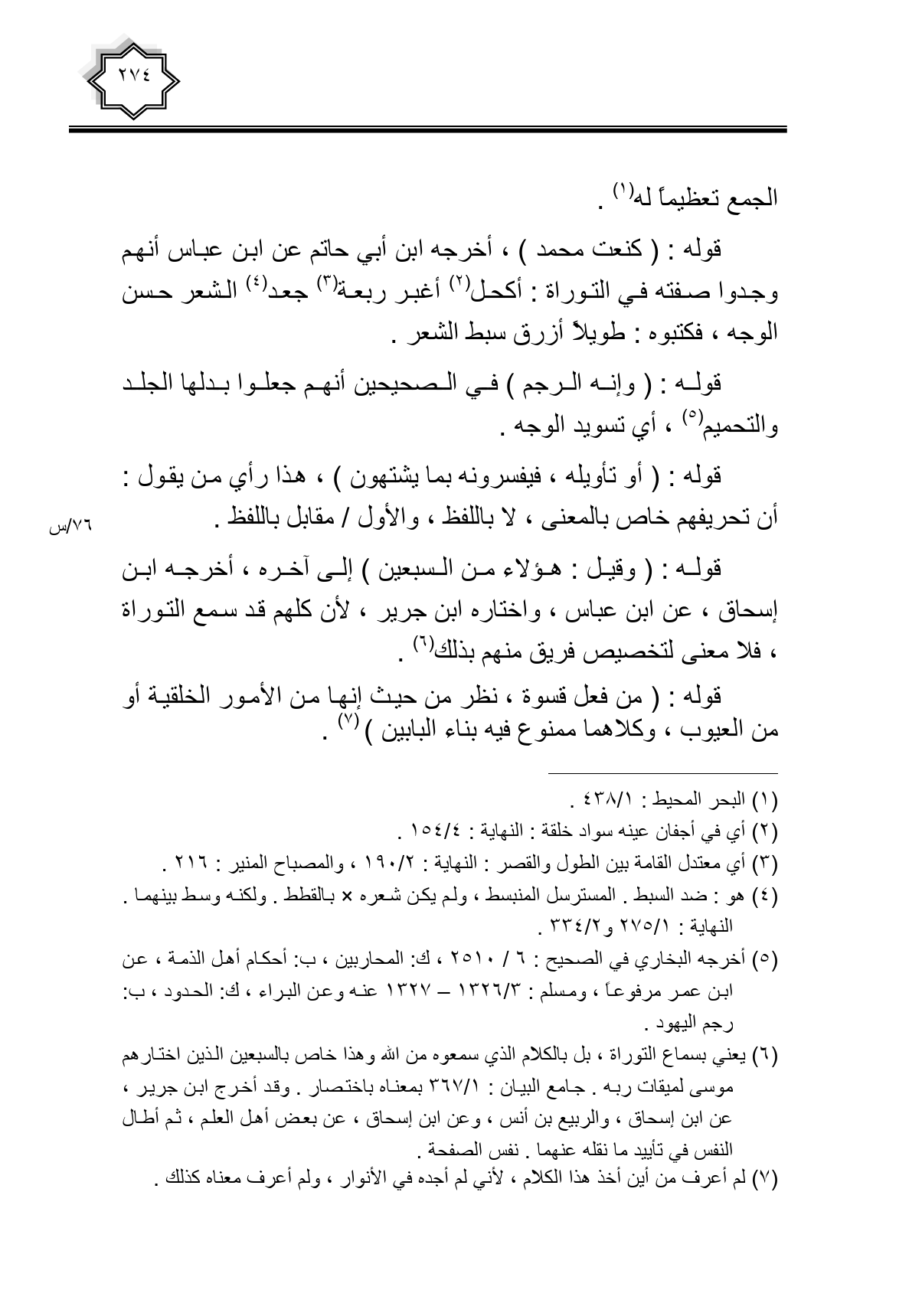 قوله: (أو تأويله، فيفسرونه بما يشتهون)، هذا رأي من يقول: أن تحريفهم خاص بالمعنى، لا باللفظ، والأول/ مقابل باللفظ.