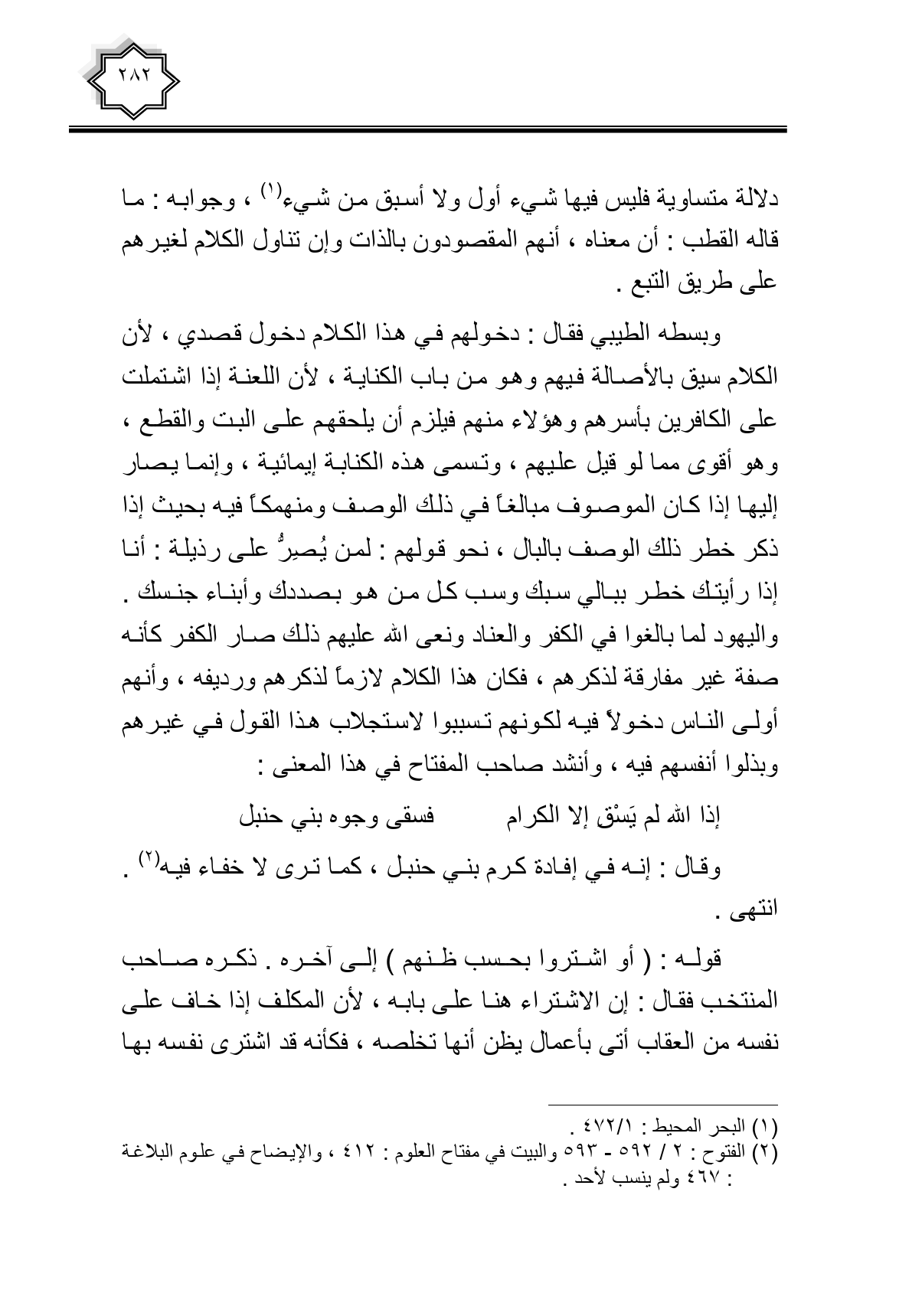 وقال: إنه في إفادة كرم بنى حنبل، كما ترى لا خفاء فيه. انتهى.