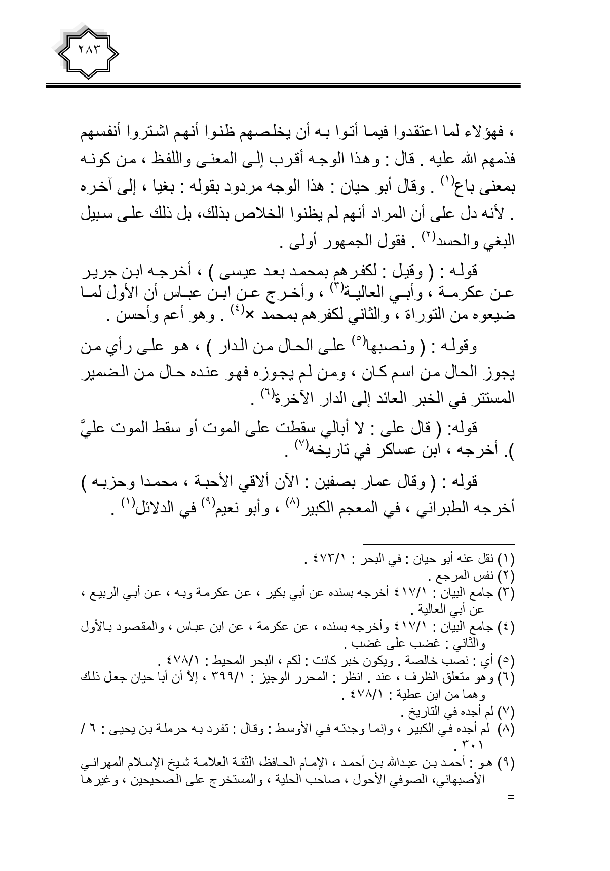 ، فهؤلاء لما اعتقدوا فيما أتوا به أن يخلصهم ظنوا أنهم اشتروا أنفسهم فذمهم الله عليه. قال: وهذا الوجه أقرب إلى المعنى واللفظ، من كونه بمعنى باع. وقال أبو حيان: هذا الوجه مردود بقوله: بغيا، إلى آخره. لأنه دل على أن المراد أنهم لم يظنوا الخلاص بذلك، بل ذلك على سبيل البغي والحسد. فقول الجمهور أولى.