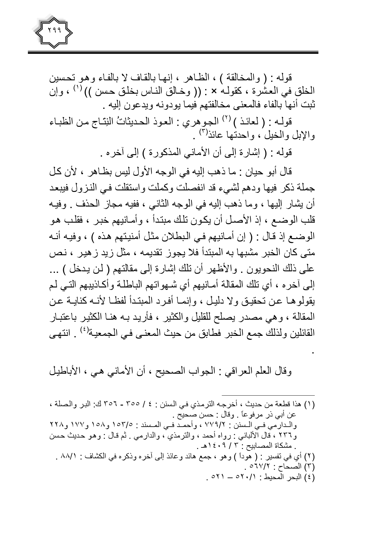 قال أبو حيان: ما ذهب إليه في الوجه الأول ليس بظاهر، لأن كل جملة ذكر فيها ودهم لشيء قد انفصلت وكملت واستقلت في النزول فيبعد أن يشار إليها، وما ذهب إليه في الوجه الثاني، ففيه مجاز الحذف. وفيه قلب الوضع، إذ الأصل أن يكون تلك مبتدأ، وأمانيهم خبر، فقلب هو الوضع إذ قال: (إن أمانيهم في البطلان مثل أمنيتهم هذه)، وفيه أنه متى كان الخبر مشبها به المبتدأ فلا يجوز تقديمه، مثل زيد زهير، نص على ذلك النحويون. والأظهر أن تلك إشارة إلى مقالتهم (لن يدخله) ... إلى آخره، أي تلك المقالة أمانيهم أي شهواتهم الباطلة وأكاذيبهم التي لم يقولوها عن تحقيق ولا دليل، وإنما أفرد المبتدأ لفظا لأنه كناية عن المقالة، وهي مصدر يصلح للقليل والكثير، فأريد به هنا الكثير باعتبار القائلين ولذلك جمع الخبر فطابق من حيث المعنى في الجمعية. انتهى.