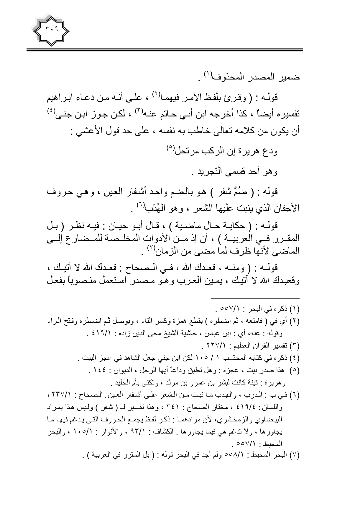 قوله: (وقرئ بلفظ الأمر فيهما، على أنه من دعاء إبراهيم تفسيره أيضا، كذا أخرجه ابن أبي حاتم عنه، لكن جوز ابن جني أن يكون من كلامه تعالى خاطب به نفسه، على حد قول الأعشي: