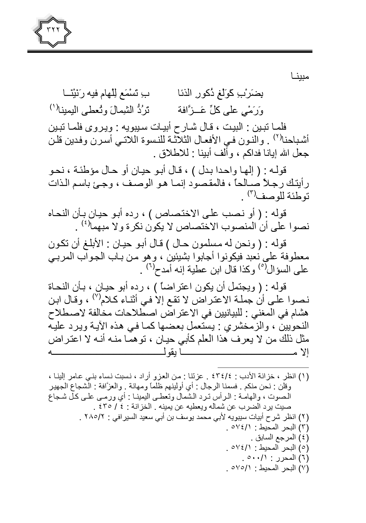 قوله: (أو نصب على الاختصاص)، رده أبو حيان بأن النحاه نصوا على أن المنصوب الاختصاص لا يكون نكرة ولا مبهما.