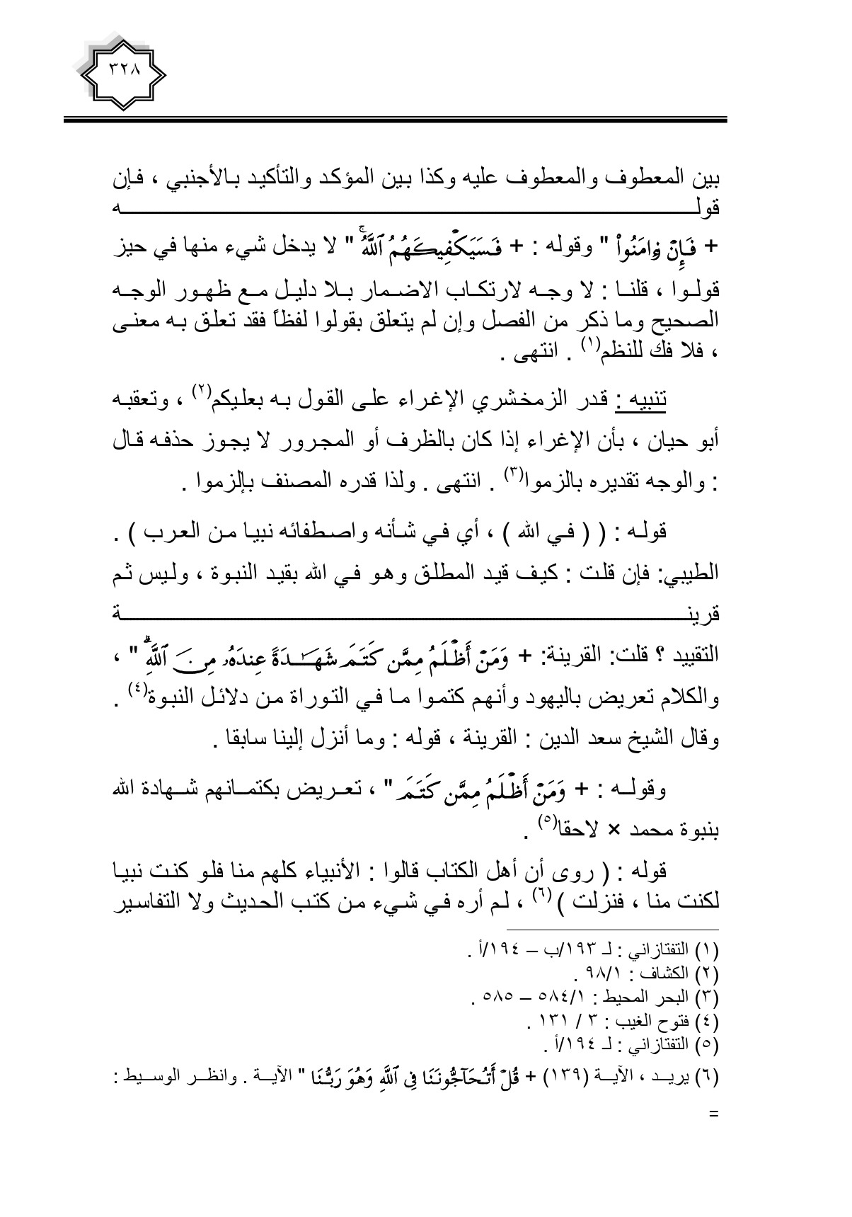 بين المعطوف والمعطوف عليه وكذا بين المؤكد والتأكيد بالأجنبي، فإن قوله {فَإِنْ آمَنُوا} وقوله: {فَسَيَكْفِيكَهُمُ اللَّهُ} لا يدخل شيء منها في حيز قولوا، قلنا: لا وجه لارتكاب الإضمار بلا دليل مع ظهور الوجه الصحيح وما ذكر من الفصل وإن لم يتعلق بقولوا لفظا فقد تعلق به معنى، فلا فك للنظم. انتهى.