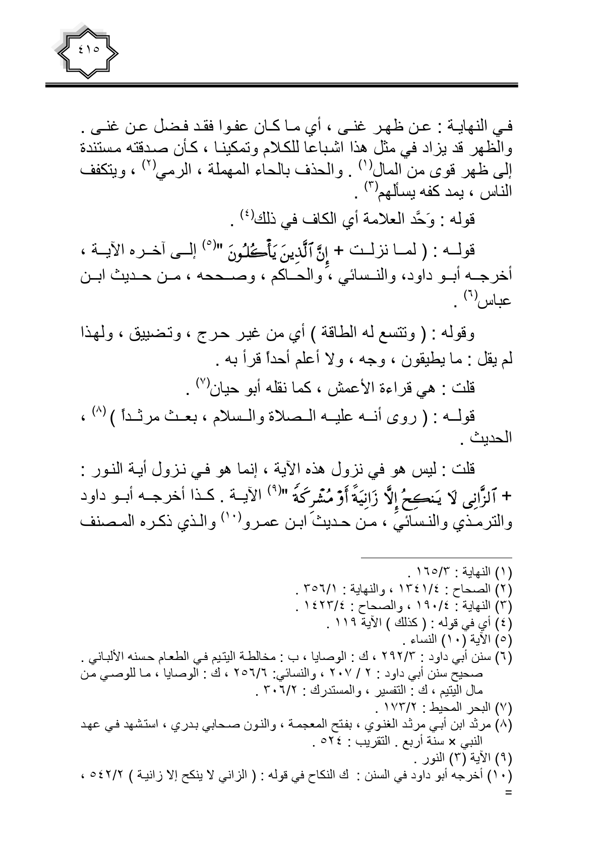 قوله: (لما نرلت {إِنَّ الَّذِينَ يَأْكُلُونَ} إلى آخره الآية، أخرجه أبو داود، والنسائي، والحاكم، وصححه، من حديث ابن عباس.