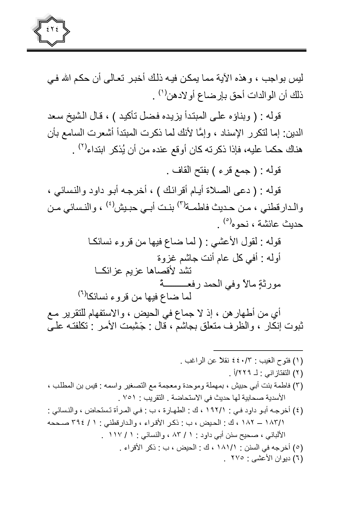 قوله: لقول الأعشى: (لما ضاع فيها من قروء نسائكا