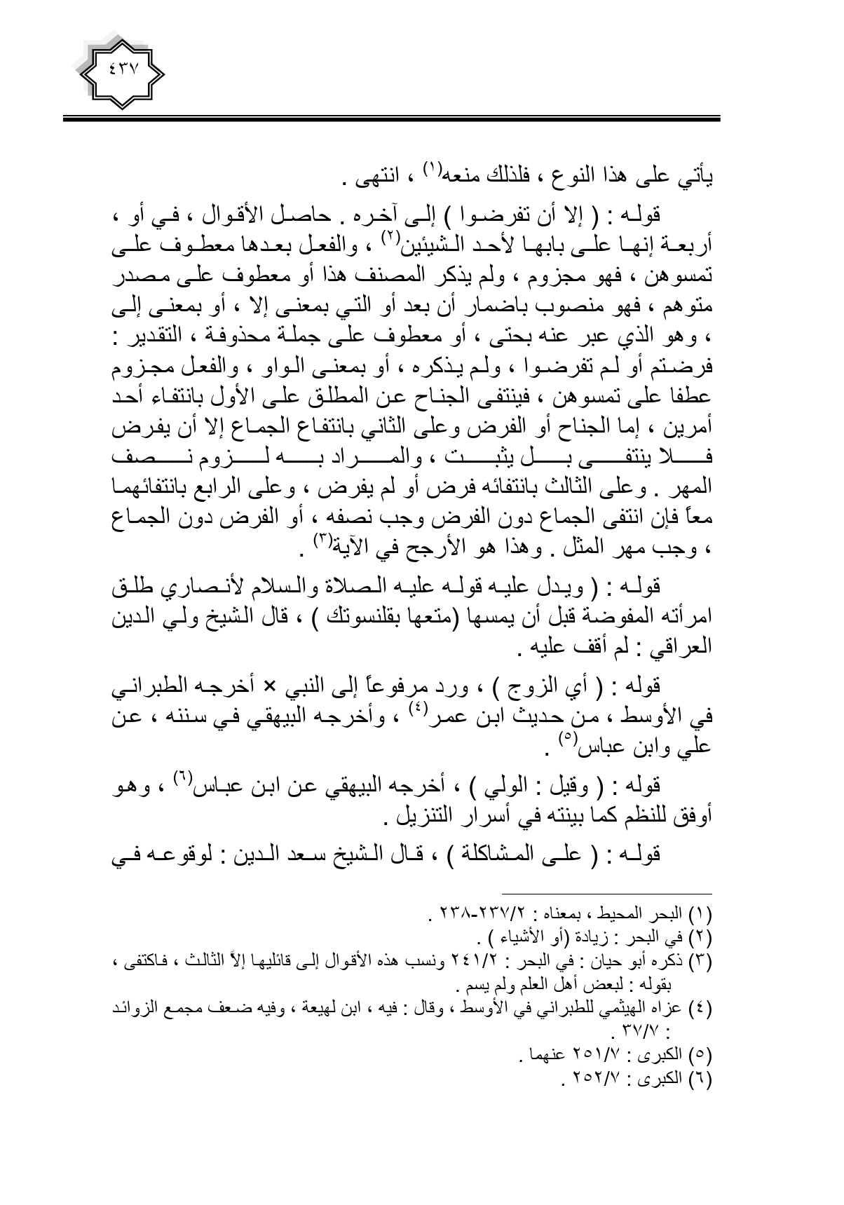قوله: (إلا أن تفرضوا) إلى آخره. حاصل الأقوال، في أو، أربعة إنها على بابها لأحد الشيئين، والفعل بعدها معطوف على تمسوهن، فهو مجزوم، ولم يذكر المصنف هذا أو معطوف على مصدر متوهم، فهو منصوب بإضمار أن بعد أو التي بمعنى إلا، أو بمعنى إلى، وهو الذي عبر عنه بحتى، أو معطوف على جملة محذوفة، التقدير: فرضتم أو لم تفرضوا، ولم يذكره، أو بمعنى الواو، والفعل مجزوم عطفا على تمسوهن، فينتفي الجناح عن المطلق على الأول بانتفاء أحد أمرين، إما الجناح أو الفرض وعلى الثاني بانتفاع الجماع إلا أن يفرض فلا ينتفي بل يثبت، والمراد به لزوم نصف المهر. وعلى الثالث بانتفائه فرض أو لا يفرض، وعلى الرابع بانتفائهما معا فإن انتفى الجماع دون الفرض وجب نصفه، أو الفرض دون الجماع، وجب مهر المثل. وهذا هو الأرجح في الآية.