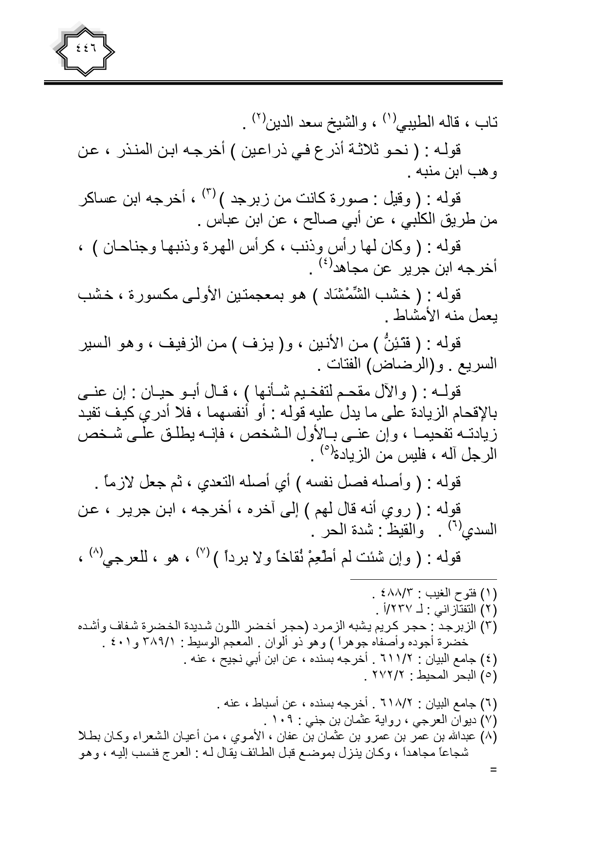 قوله: (والآل مقحم لتفخيم شأنها)، قال أبو حيان: إن عنى بالإقحام الزيادة على ما يدل عليه قوله: أو أنفسهما، فلا أدري كيف تفيد زيادته تفحيما، وإن عنى بالأول الشخص، فإنه يطلق على شخص الرجل آله، فليس من الزيادة.