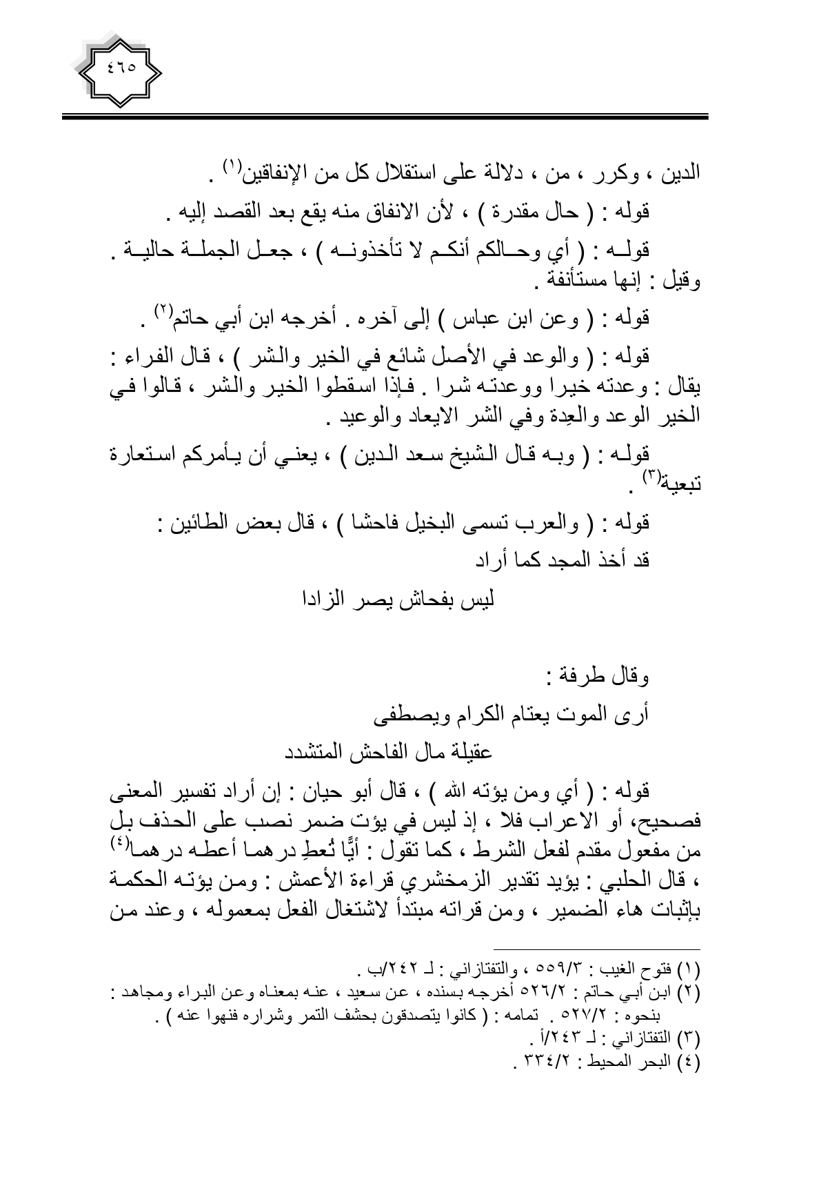 قوله: (والعرب تسمي البخيل فاحشا)، قال بعض الطائين:
