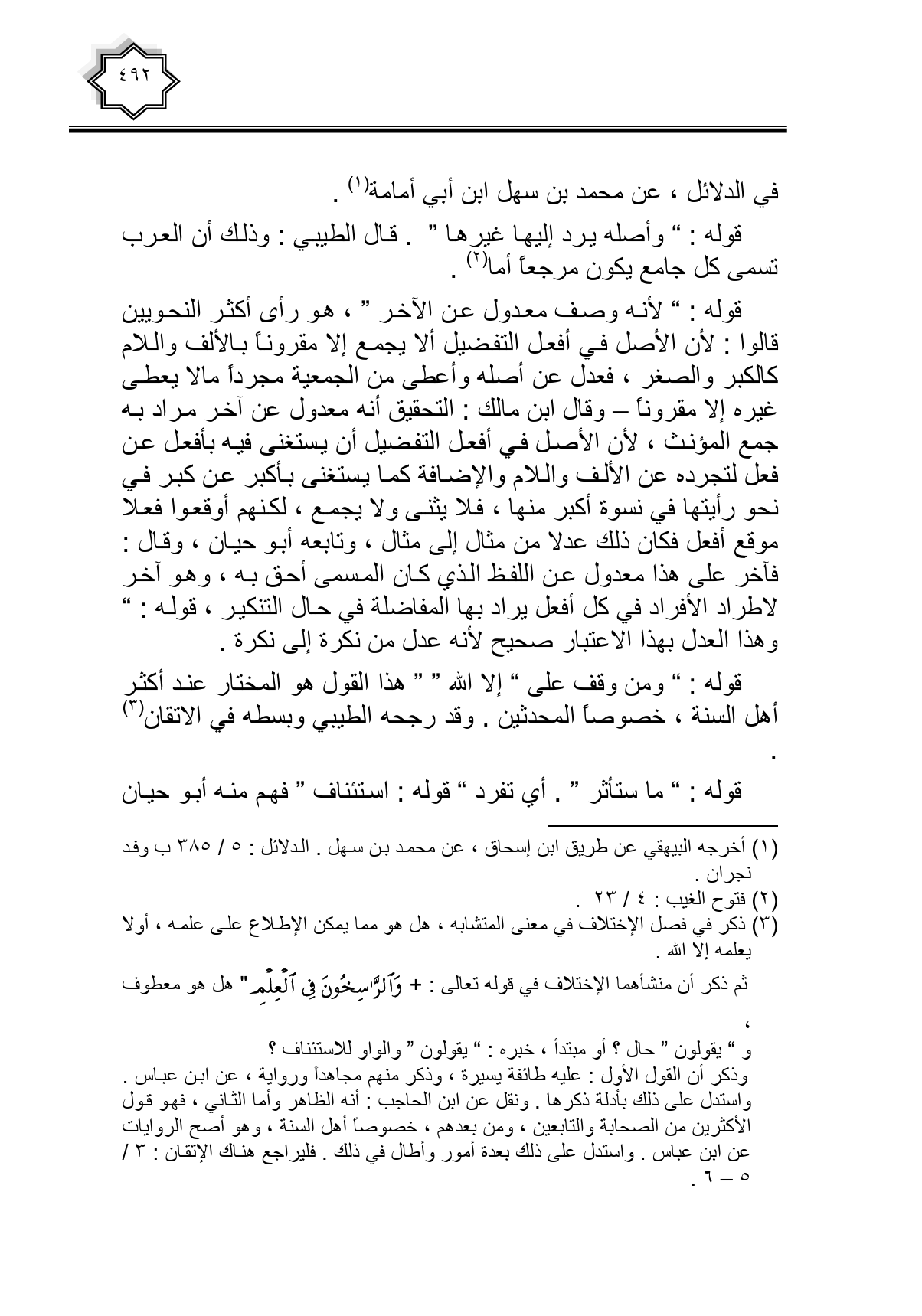 قوله: " ومن وقف على " إلا الله " " هذا القول هو المختار عند أكثر أهل السنة، خصوصا المحدثين. وقد رجحه الطيبي وبسطه في الاتقان.