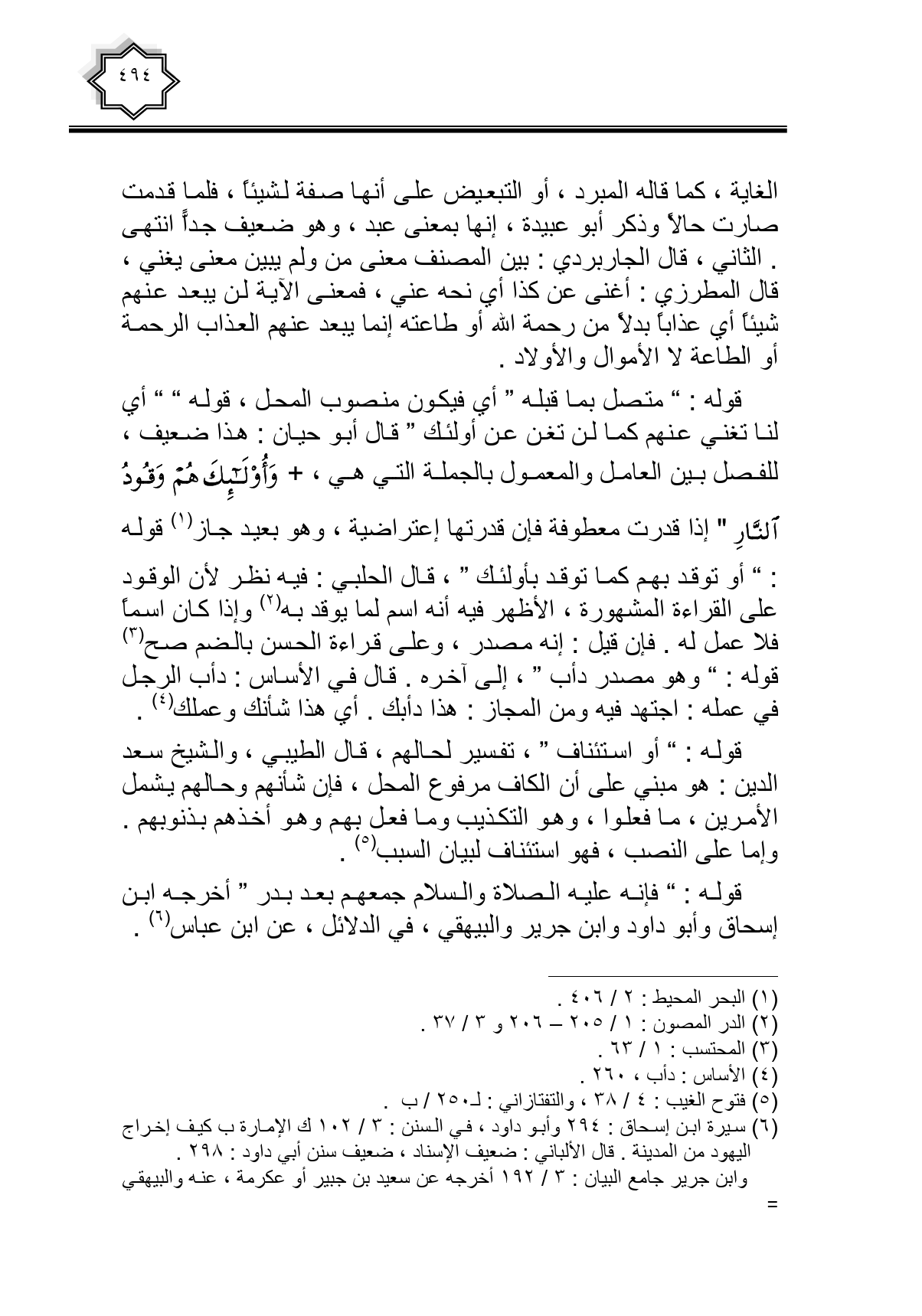 قوله: " متصل بما قبله " أي فيكون منصوب المحل، قوله " " أي لنا تغني عنهم كما لن تغن عن أولئك " قال أبو حيان: هذا ضعيف، للفصل بين العامل والمعمول بالجملة التي هي، {وَأُولَئِكَ هُمْ وَقُودُ النَّارِ} إذا قدرت معطوفة فإن قدرتها إعتراضية، وهو بعيد جاز قوله: " أو توقد بهم كما توقد بأولئك "، قال الحلبي: فيه نظر لأن الوقود على القراءة المشهورة، الأظهر فيه أنه اسم لما يوقد به وإذا كان اسما فلا عمل له. فان قيل: إنه مصدر، وعلى قراءة الحسن بالضم صح قوله: " وهو مصدر دأب "، إلى آخره. قال في الأساس: دأب الرجل في عمله: اجتهد فيه ومن المجاز: هذا دأبك. أي هذا شأنك وعملك.