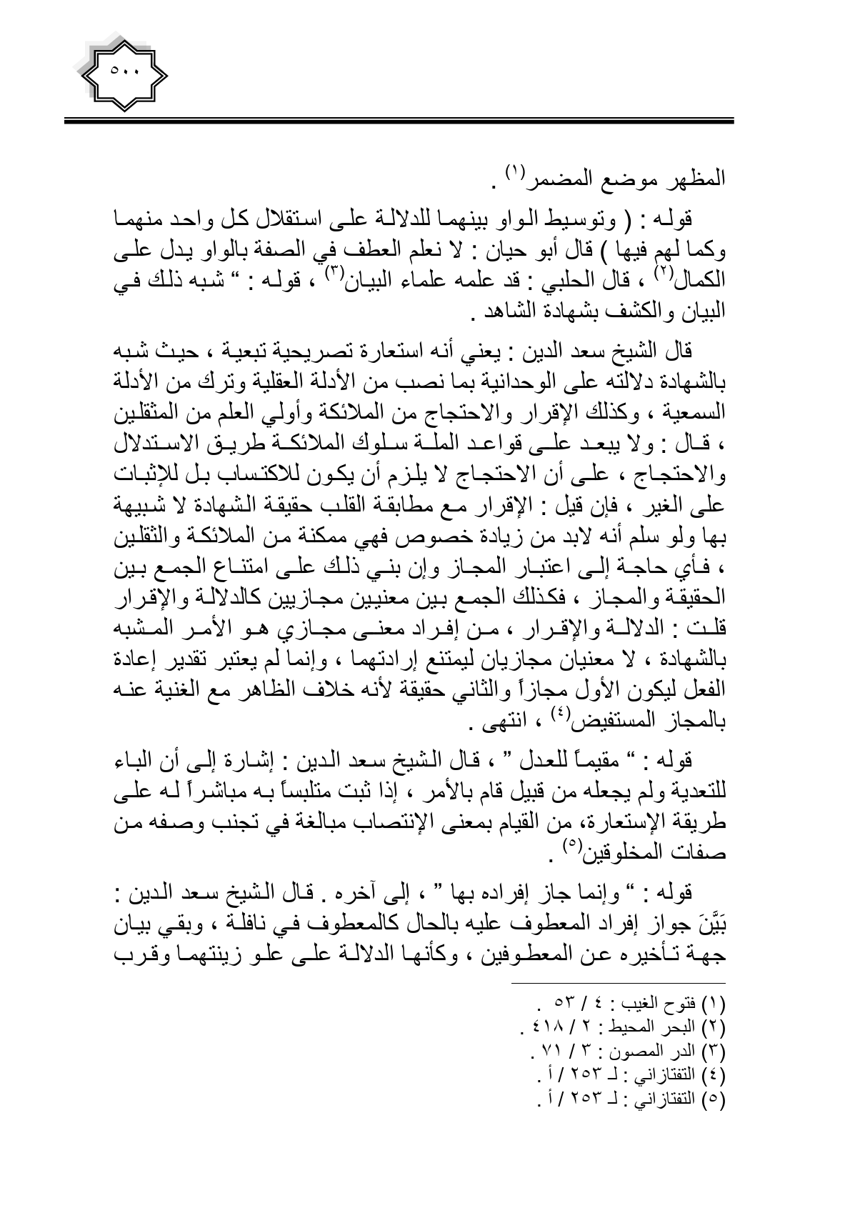 قوله: (وتوسيط الواو بينهما للدلالة على استقلال كل واحد منهما وكما لهم فيها) قال أبو حيان: لا نعلم العطف في الصفة بالواو يدل على الكمال، قال الحلبي: قد علمه علماء البيان، قوله: " شبه ذلك في البيان والكشف بشهادة الشاهد.