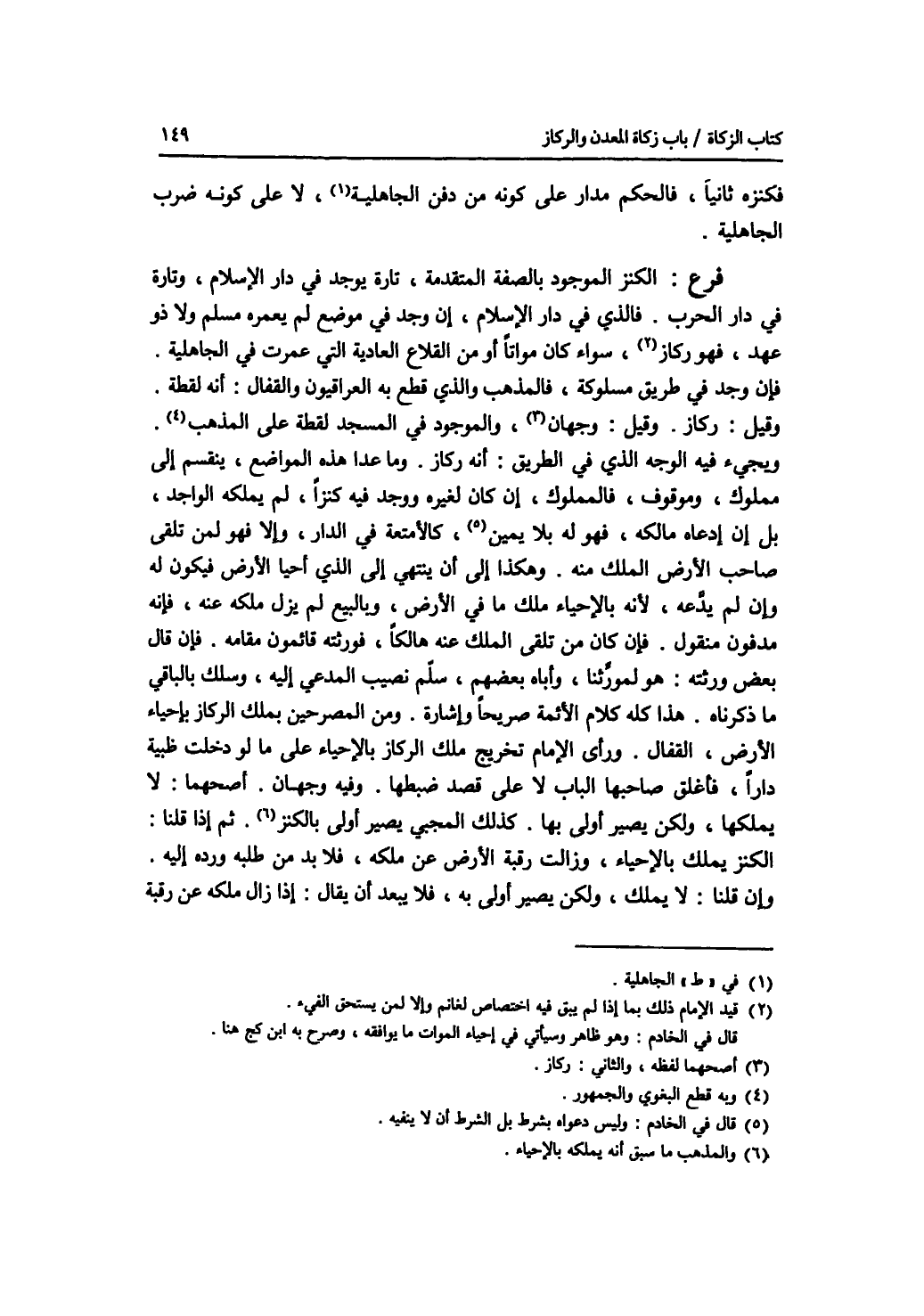 فكنزه ثانيا، فالحكم مدار على كونه من دفن الجاهيلين، لا على كونه ضرب الجاهلية. فرع الكنز الموجود بالصفة المتقدمة، تارة يوجد في دار الاسلام، وتارة في دار الحرب. فالذي في دار الاسلام، إن وجد في موضع لم يعمره مسلم ولا ذو عهد، فهو ركاز، سواء كان مواتا أو من القلاع العادية التي عمرت في الجاهلية. فإن وجد في طريق مسلوكة، فالمذهب والذي قطع به العراقيون والقفال: أنه لقطة. وقيل: ركاز. وقيل: وجهان، والموجود في المسجد لقطة على المذهب. ويجئ فيه الوجه الذي في الطريق: أنه ركاز. وما عدا هذه المواضع، ينقسم إلى مملوك، وموقوف، فالمملوك، إن كان لغيره ووجد فيه كنزا، لم يملكه الواجد، بل إن ادعاه مالكه، فهو له بلا يمين، كالامتعة في الدار، وإلا فهو لمن تلقى صاحب الارض الملك منه. وهكذا إلى أن ينتهي إلى الذي أحيا الارض فيكون له وإن لم يدعه، لانه بالاحياء ملك ما في الارض، وبالبيع لم يزل ملكه عنه، فانه مدفون منقول. فإن كان من تلقى الملك عنه هالكا، فورثته قائمون مقامه. فإن قال بعض ورثته: هو لمورثنا، وأباه بعضهم، سلم نصيب المدعي إليه، وسلك بالباقي ما ذكرناه. هذا كله كلام الائمة صريحا وإشارة. ومن المصرحين بملك الركاز باحياء الارض، القفال. ورأى الامام تخريج ملك الركاز بالاحياء على ما لو دخلت ظبية دارا، فأغلق صاحبها الباب لا على قصد ضبطها. وفيه وجهان. أصحهما: لا يملكها، ولكن يصير أولى بها. كذلك المحيي يصير أولى بالكنز. ثم إذا قلنا: الكنز يملك بالاحياء، وزالت رقبة الارض عن ملكه، فلا بد من طلبه ورده إليه. وإن قلنا: لا يملكه، ولكن يصير أولى به، فلا يبعد أن يقال: إذا زال ملكه عن رقبة