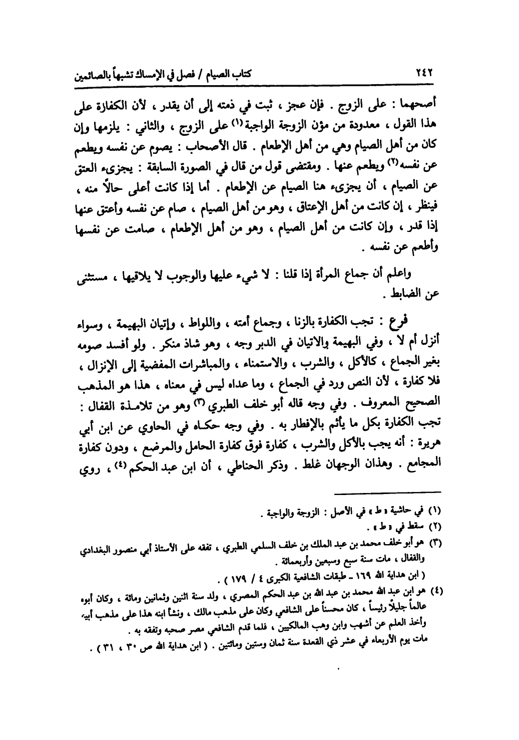 أصحهما: على الزوج. فإن عجز، ثبت في ذمته إلى أن يقدر، لان الكفارة على هذا القول، معدودة من مؤن الزوجة الواجبة على الزوج، والثاني: يلزمها وإن كان من أهل الصيام وهي من أهل الاطعام. قال الاصحاب: يصوم عن نفسه ويطعم عنها. ومقتضى قول من قال في الصورة السابقة: يجزئ العتق عن الصيام، أن يجزئ هنا الصيام عن الاطعام. أما إذا كانت أعلى حالا منه، فينظر، إن كانت من أهل الاعتاق، وهو من أهل الصيام، صام عن نفسه وأعتق عنها إذا قدر، وإن كانت من أهل الصيام، وهو من أهل الاطعام، صامت عن نفسها وأطعم عن نفسه. واعلم أن جماع المرأة إذا قلنا: لا شئ عليها والوجوب لا يلاقيها، مستثنى عن الضابط. فرع تجب الكفارة بالزنا، وجماع أمته، واللواط، وإتيان البهيمة، وسواء أنزل أم لا، وفي البهيمة والاتيان في الدبر وجه، وهو شاذ منكر. ولو أفسد صومه بغير الجماع، كالاكل، والشرب، والاستمناء، والمباشرات المفضية إلى الانزال، فلا كفارة، لان النص ورد في الجماع، وما عداه ليس في معناه، هذا هو المذهب الصحيح المعروف. وفي وجه قاله أبو خلف الطبري وهو من تلامذة القفال: تجب الكفارة بكل ما يأثم بالافطار به. وفي وجه حكاه في الحاوي عن ابن أبي هريرة: أنه يجب بالاكل والشرب، كفارة فوق كفارة الحامل والمرضع، ودون كفارة المجامع. وهذان الوجهان غلط. وذكر الحناطي، أن ابن عبد الحكم، روي