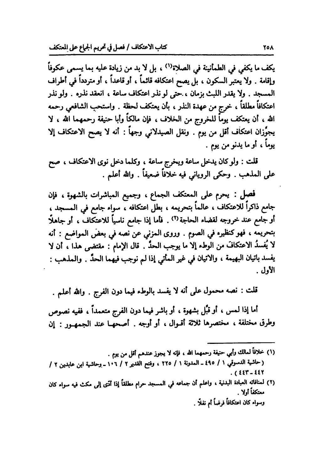 فصل يحرم على المعتكف الجماع، وجميع المباشرات بالشهوة، فإن جامع ذاكرا للاعتكاف، عالما بتحريمه، بطل اعتكافه، سواء جامع في المسجد، أو جامع عند خروجه لقضاء الحاجة. فأما إذا جامع ناسيا للاعتكاف، أو جاهلا بتحريمه، فهو كنظيره في الصوم. وروى المزني عن نصه في بعض المواضع: أنه لا يفسد الاعتكاف من الوطئ إلا ما يوجب الحد. قال الامام: مقتضى هذا، أن لا يفسد بإتيان البهيمة، والاتيان في غير المأتي إذا لم نوجب فيهما الحد. والمذهب: الاول. قلت: نصه محمول على أنه لا يفسد بالوطئ فيما دون الفرج. والله أعلم. أما إذا لمس، أو قبل بشهوة، أو باشر فيما دون الفرج معتمدا، ففيه نصوص وطرق مختلفة، مختصرها ثلاثة أقوال، أو أوجه. أصحها عند الجمهور: إن