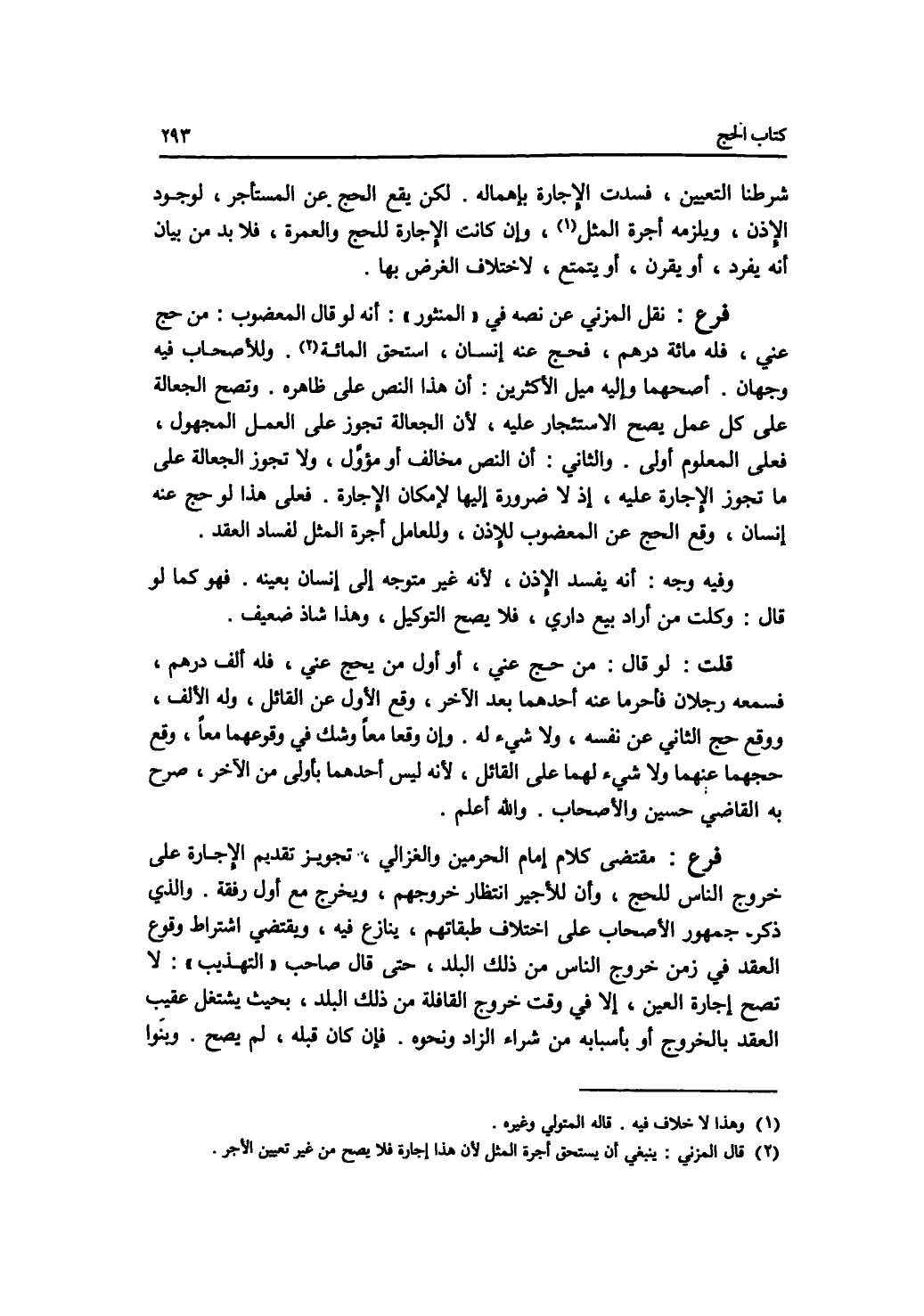 شرطنا التعيين، فسدت الاجارة بإهماله. لكن يقع الحج عن المستأجر، لوجود الاذن، ويلزمه أجرة المثل. وإن كانت الاجارة للحج والعمرة، فلا بد من بيان أنه يفرد، أو يقرن، أو يتمتع، لاختلاف الغرض بها. فرع نقل المزني عن نصه في المنثور: أنه لو قال المعضوب: من حج عني، فله مائة درهم، فحج عنه إنسان، استحق المائة. وللاصحاب فيه وجهان. أصحهما وإليه ميل الاكثرين: أن هذا النص على ظاهره. وتصح الجعالة على كل عمل يضح الاستئجار عليه، لان الجعالة تجوز على العمل المجهول، فعلى المعلوم أولى. والثاني: أن النص مخالف أو مؤول، ولا تجوز الجعالة على ما تجوز الاجارة عليه، إذ لا ضرورة إليها لامكان الاجارة. فعلى هذا لو حج عنه إنسان، وقع الحج عن المعضوب للاذن، وللعامل أجرة المثل لفساد العقد. وفيه وجه: أنه يفسد الاذن، لانه غير متوجه إلى إنسان بعينه. فهو كما لو قال: وكلت من أراد بيع داري، فلا يصح التوكيل، وهذا شاذ ضعيف. قلت: لو قال: من حج عني، أو أول من يحج عني، فله ألف درهم، فسمعه رجلان فأحرما عنه أحدهما بعد الآخر، وقع الاول عن القائل، وله الالف، ووقع حج الثاني عن نفسه، ولا شئ له. وإن وقعا معا وشك في وقوعهما معا، وقع حجهما عنهما ولا شئ لهما على القائل، لانه ليس أحدهما بأولى من الآخر، صرح به القاضي حسين والاصحاب. والله أعلم. فرع مقتضى كلام إمام الحرمين والغزالي، تجويز تقديم الاجارة على خروج الناس للحج، وأن للاجير انتظار خروجهم، ويخرج مع أول رفقة. والذي ذكره جمهور الاصحاب على اختلاف طبقاتهم، ينازع فيه. ويقتضي اشتراط وقوع العقد في زمن خروج الناس من ذلك البلد. حتى قال صاحب التهذيب: لا تصح إجارة العين، إلا في وقت خروج القافلة من ذلك البلد، بحيث يشتغل عقيب العقد بالخروج أن بأسبابه من شراء الزاد ونحوه. فإن كان قبله، لم يصح. وبنوا