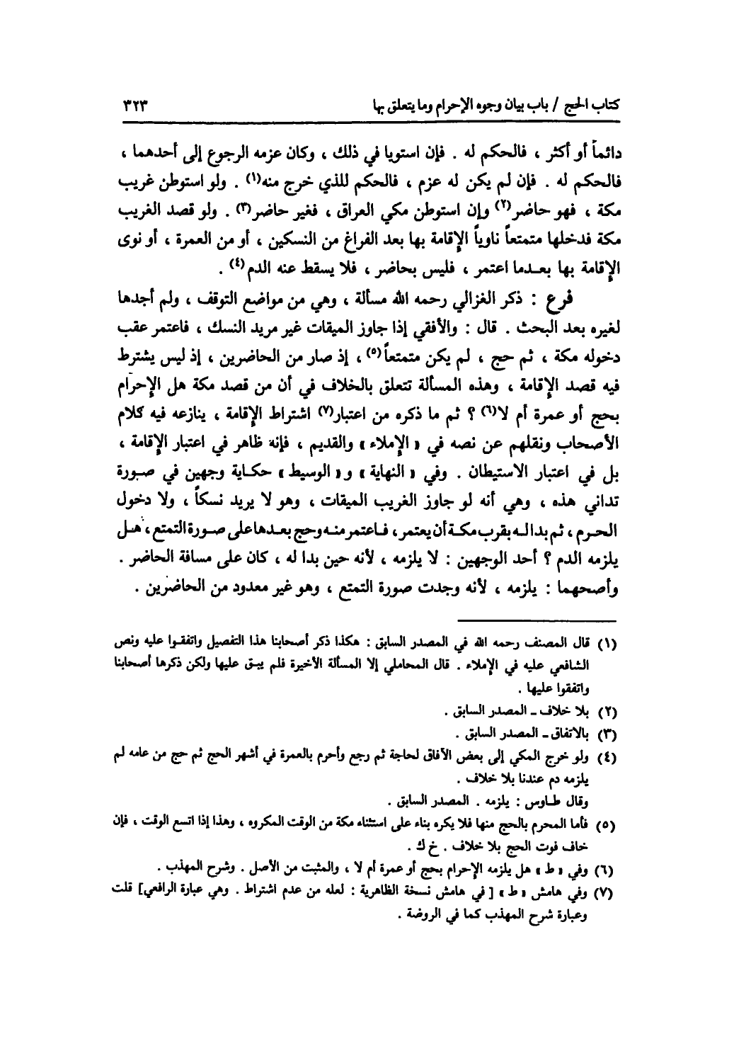 دائما أو أكثر، فالحكم له. فإن استويا في ذلك، وكان عزمه الرجوع إلى أحدهما، فالحكم له. فإن لم يكن له عزم، فالحكم للذي خرج منه. ولو استوطن غريب مكة، فهو حاضر. وإن استوطن مكي العراق، فغير حاضر. ولو قصد الغريب مكة فدخلها متمتعا ناويا الاقامة بها بعد الفراغ من النسكين، أو من العمرة، أو نوى الاقامة بها بعد ما اعتمر، فليس بحاضر، فلا يسقط عنه الدم. فرع ذكر الغزالي رحمه الله مسألة، وهي من مواضع التوقف، ولم أجدها لغيره بعد البحث. قال: والافقي إذا جاوز الميقات غير مريد النسك، فاعتمر عقب دخوله مكة، ثم حج، لم يكن متمتعا، إذ صار من الحاضرين، إذ ليس يشترط فيه قصد الاقامة، وهذه المسألة تتعلق بالخلاف في أن من قصد مكة هل يلزمه الاحرام بحج أو عمرة أم لا ؟ ثم ما ذكره من اعتبار اشتراط الاقامة، ينازعه فيه كلام الاصحاب ونقلهم عن نصه في الاملاء والقديم، فإنه ظاهر في اعتبار الاقامة، بل في اعتبار الاستيطان. وفي النهاية والوسيط حكاية وجهين في صورة تداني هذه. وهي أنه لو جاوز الغريب الميقات، وهو لا يريد نسكا، ولا دخول الحرم، ثم بدا له بقرب مكة أن يعتمر، فاعتمر منه وحج بعدها على صورة التقتع، هل يلزمه الدم ؟ أحد الوجهين: لا يلزمه لانه حين بدا له، كان على مسافة الحاضر. وأصحهما: يلزمه، لانه وجدت صورة التمتع، وهو غير معدود من الحاضرين.