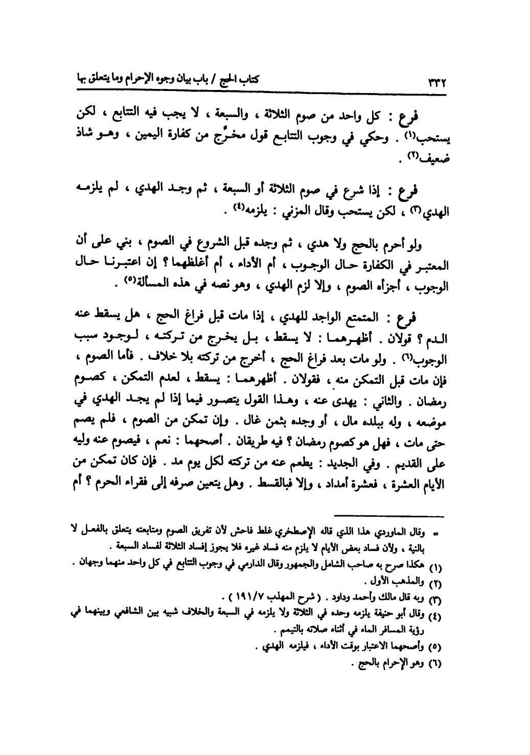 فرع كل واحد من صوم الثلاثة، والسبعة، لا يجب فيه التتابع، لكن يستحب. وحكي في وجوب التتابع قول مخرج من كفارة اليمين، وهو شاذ ضعيف. فرع إذا شرع في صوم الثلاثة أو السبعة، ثم وجد الهدي، لم يلزمه الهدي، لكن يستحب. وقال المزني: يلزمه. ولو أحرم بالحج ولا هدي، ثم وجده قبل الشروع في الصوم، بني على أن المعتبر في الكفارة حال الوجوب، أم الاداء، أم أغلظهما ؟ إن اعتبرنا حال الوجوب، أجزأه الصوم، وإلا لزم الهدي، وهو نصه في هذه المسألة. فرع المتمتع الواجد للهدي، إذا مات قبل فراغ الحج، هل يسقط عنه الدم ؟ قولان. أظهرهما: لا يسقط، بل يخرج من تركته، لوجود سبب الوجوب. ولو مات بعد فراغ الحج، أخرج من تركته بلا خلاف. فأما الصوم، فإن مات قبل التمكن منه، فقولان. أظهرهما: يسقط، لعدم التمكن، كصوم رمضان. والثاني: يهدى عنه، وهذا القول يتصور فيما إذا لم يجد الهدي في موضعه، وله ببلده مال، أو وجده بثمن غال. وإن تمكن من الصوم، فلم يصم حتى مات، فهل هو كصوم رمضان ؟ فيه طريقان. أصحهما: نعم، فيصوم عنه وليه على القديم. وفي الجديد: يطعم عنه من تركته لكل يوم مد. فإن كان تمكن من الايام العشرة، فعشرة أمداد، وإلا فبالقسط. وهل يتعين صرفه إلى فقراء الحرم، أم