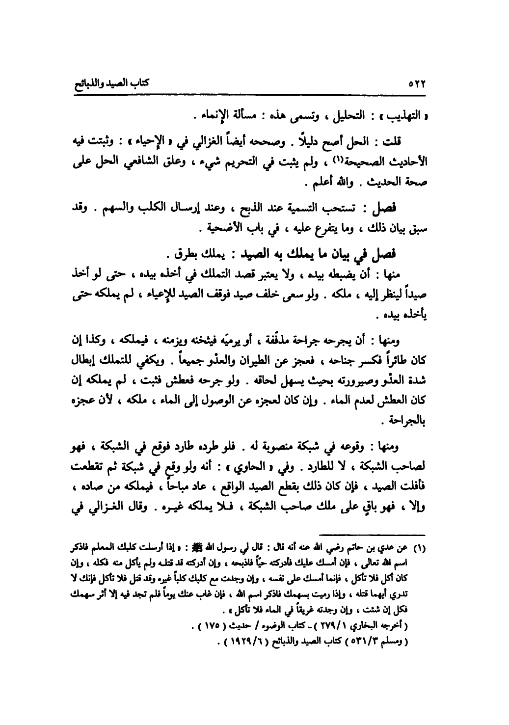 فصل في بيان ما يملك به الصيد
