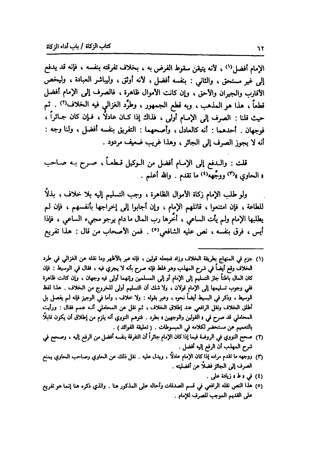الامام أفضل، لانه يتيقن سقوط الفرض به، بخلاف تفرقته بنفسه، فإنه قد يدفع إلى غير مستحق، والثاني: بنفسه أفضل، لانه أوثق، وليباشر العبادة، وليخص الاقارب والجيران والاحق، وإن كانت الاموال ظاهرة، فالصرف إلى الامام أفضل قطعا، هذا هو المذهب، وبه قطع الجمهور، وطرد الغزالي فيه الخلاف. ثم حيث قلنا: الصرف إلى الامام أولى، فذاك إذا كان عادلا، فإن كان جائرا، فوجهان. أحدهما: أنه كالعادل، وأصحهما: التفريق بنفسه أفضل، ولنا وجه: أنه لا يجوز الصرف إلى الجائر، وهذا غريب ضعيف مردود. قلت: والدفع إلى الامام أفضل من الوكيل قطعا، صرح به صاحب الحاوي ووجهه على ما تقدم. والله أعلم. ولو طلب الامام زكاة الاموال الظاهرة، وجب التسليم إليه بلا خلاف، بذلا للطاعة، فان امتنعوا، قاتلهم الامام، وإن أجابوا إلى إخراجها بأنفسهم، فان لم يطلبها الامام ولم يأت الساعي، أخرها رب المال ما دام يرجو مجئ الساعي، فإذا أيس، فرق بنفسه، نص عليه الشافعي. فمن الاصحاب من قال: هذا تفريع