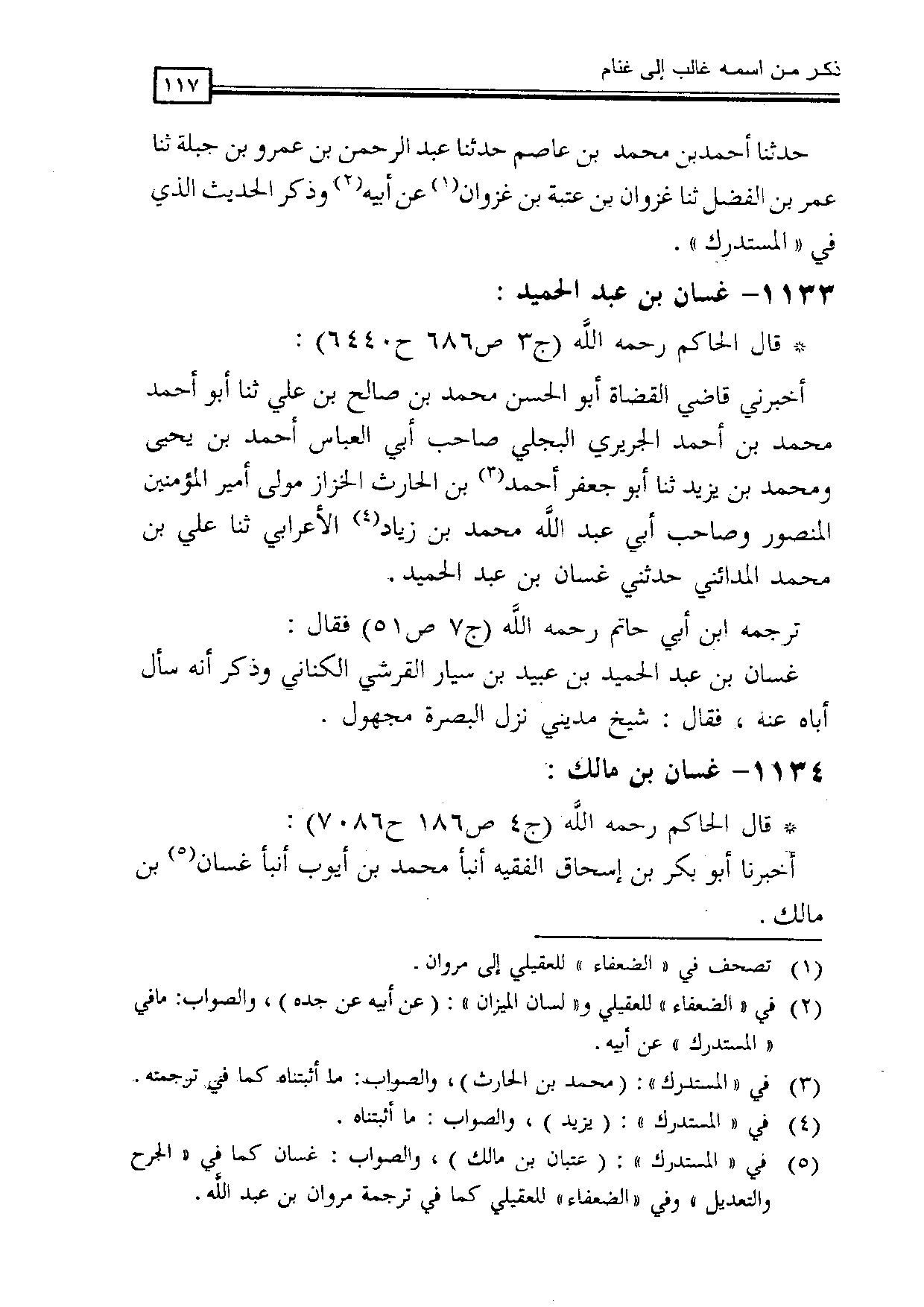 (¬5) في «المستدرك»: (عتبان بن مالك)، والصواب: غسان كما في «الجرح والتعديل» وفي «الضعفاء» للعقيلي كما في ترجمة مروان بن عبد الله.