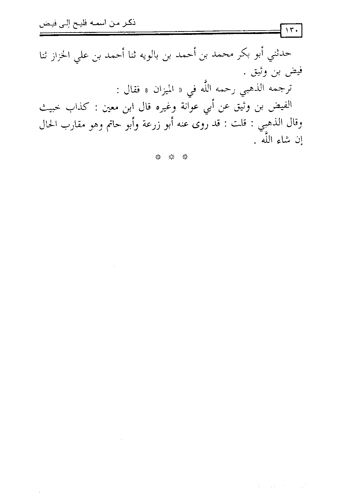 حدثني أبو بكر محمد بن أحمد بن بالويه، ثنا أحمد بن علي الخزاز، ثنا فيض بن وثيق.