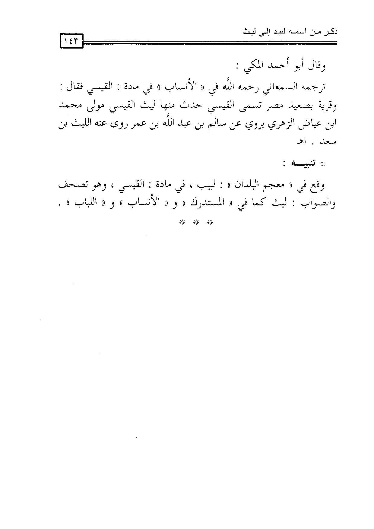وقع في «معجم البلدان»: لبيب في مادة: القيسي، وهو تصحف، والصواب: ليث كما في «المستدرك» و «الأنساب» و «اللباب».