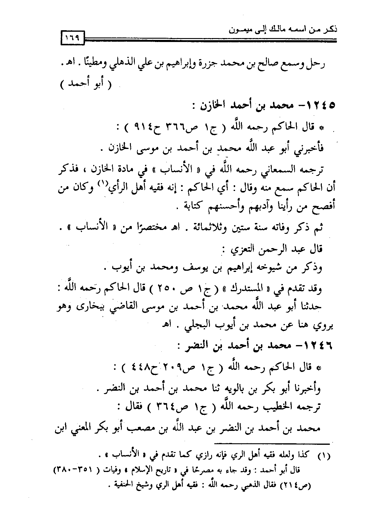 ترجمه السمعاني رحمه الله في «الأنساب» في مادة الخازن، فذكر أن الحاكم سمع منه وقال: أي الحاكم: إنه فقيه أهل الرأي، وكان من أفصح من رأينا وآدبهم وأحسنهم كتابة.