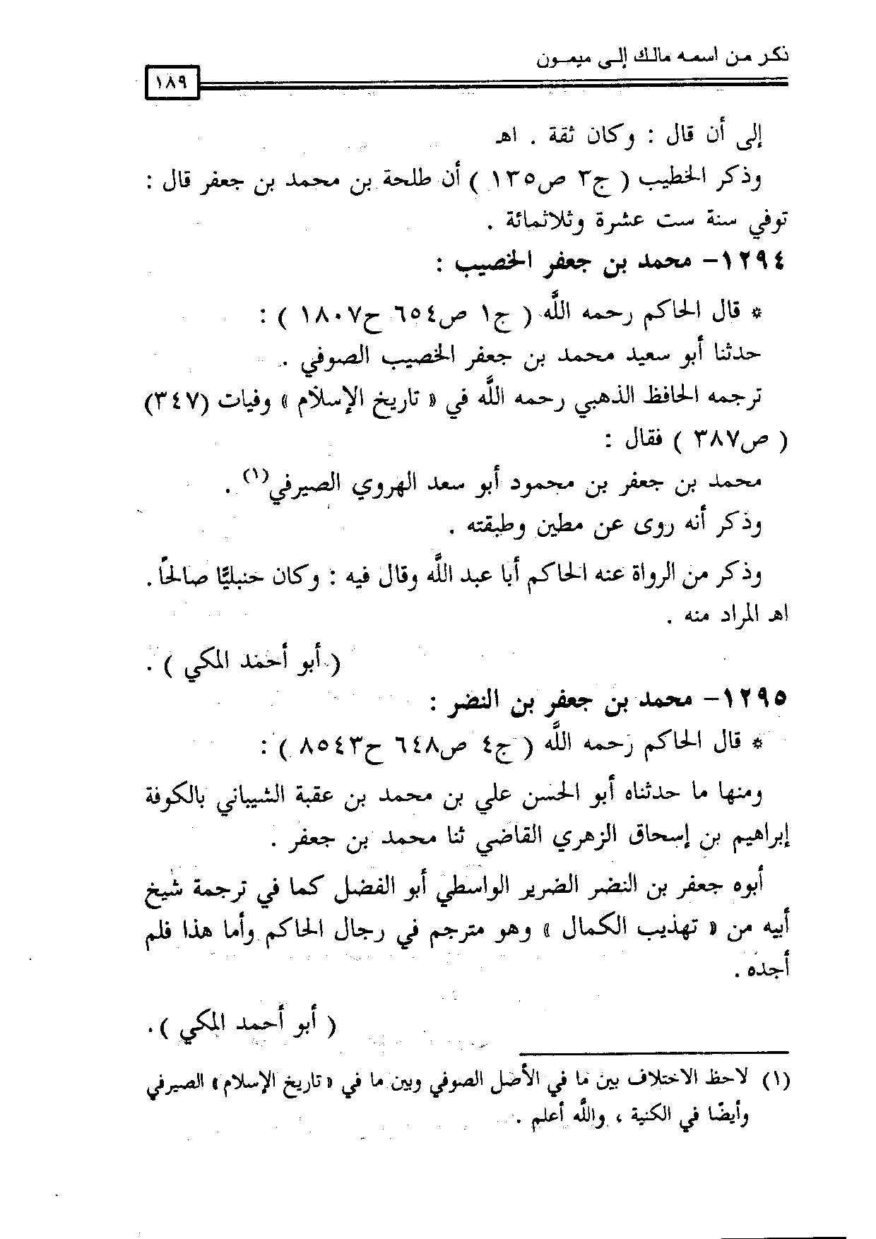 وذكر الخطيب (ج 3 ص 135) أن طلحة بن محمد بن جعفر قال: توفي سنة ست عشرة وثلاثمائة.