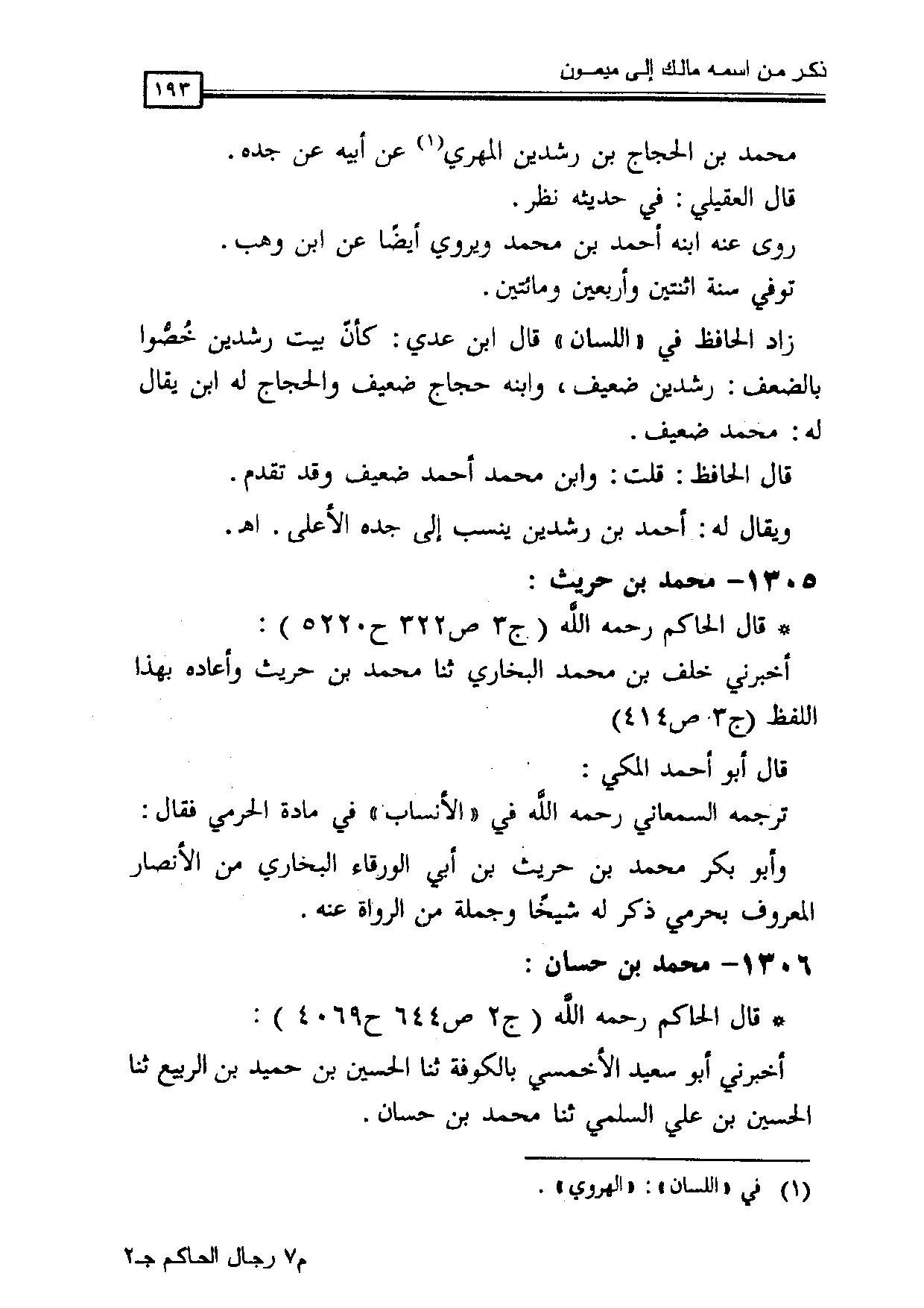 زاد الحافظ في «اللسان» قال ابن عدي: كأن بيت رشدين خصوا بالضعف: رشدين ضعيف، وابنه حجاج ضعيف والحجاج له ابن يقال له: محمد ضعيف.