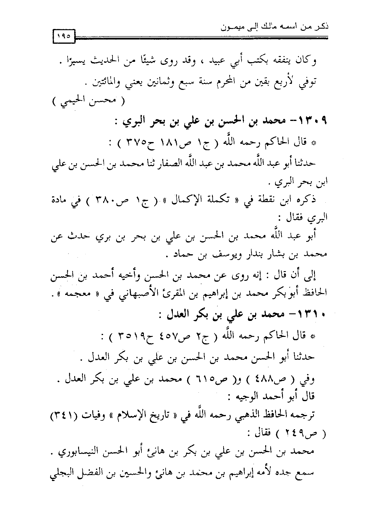 1309 - محمد بن الحسن بن علي بن بحر البري: