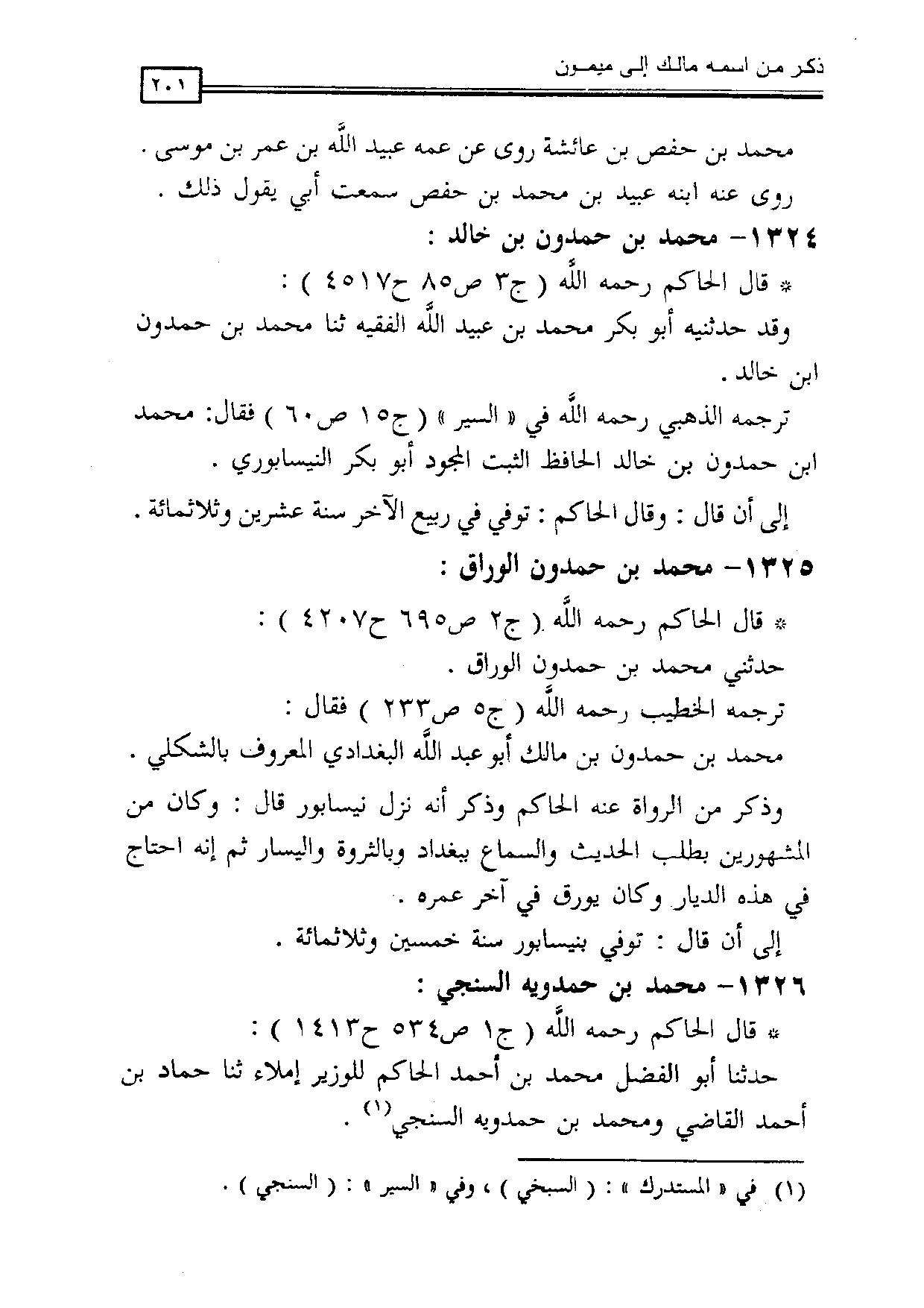 حدثنا أبو الفضل محمد بن أحمد الحاكم للوزير إملاء، ثنا حماد بن أحمد القاضي ومحمد بن حمدويه السنجي.
