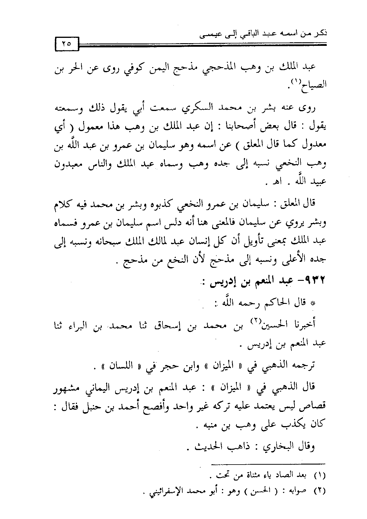 قال المعلق: سليمان بن عمرو النخعي كذبوه وبشر بن محمد فيه كلام وبشر يروي عن سليمان، فالمعنى هنا أنه دلس اسم سليمان بن عمرو فسماه عبد الملك بمعنى تأويل أن كل إنسان عبد لمالك الملك سبحانه ونسبه إلى جده الأعلى ونسبه إلى مذجج لأن النخع من مذحج.