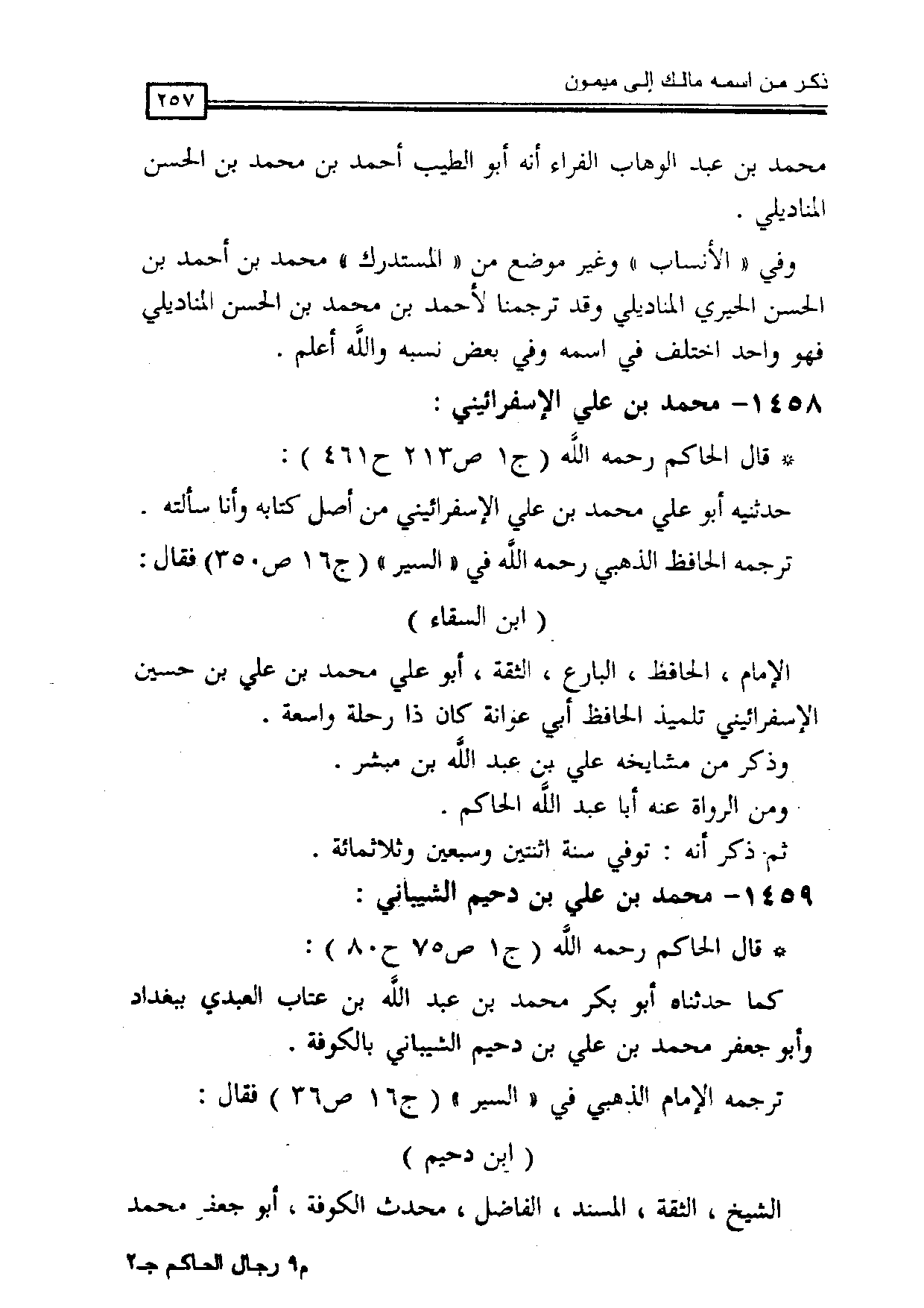 وفي «الأنساب» وغير موضع من «المستدرك» محمد بن أحمد بن الحسن الحيري المناديلي، وقد ترجمنا لأحمد بن محمد بن الحسن المناديلي فهو واحد اختلف في اسمه وفي بعض نسبه والله أعلم.