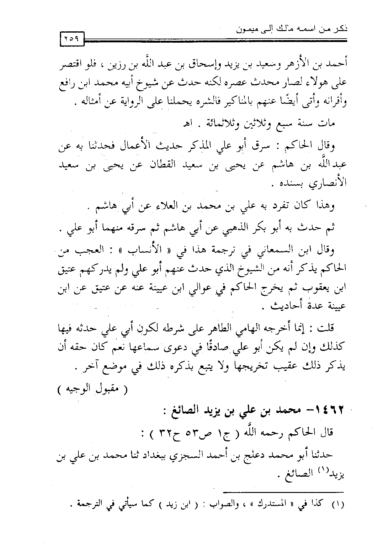 وقال ابن السمعاني في ترجمة هذا في «الأنساب»: العجب من الحاكم يذكر أنه من الشيوخ الذي حدث عنهم أبو علي ولم يدركهم عتيق بن يعقوب، ثم يخرج الحاكم في عوالي ابن عيينة عنه عن عتيق عن ابن عيينة عدة أحاديث.