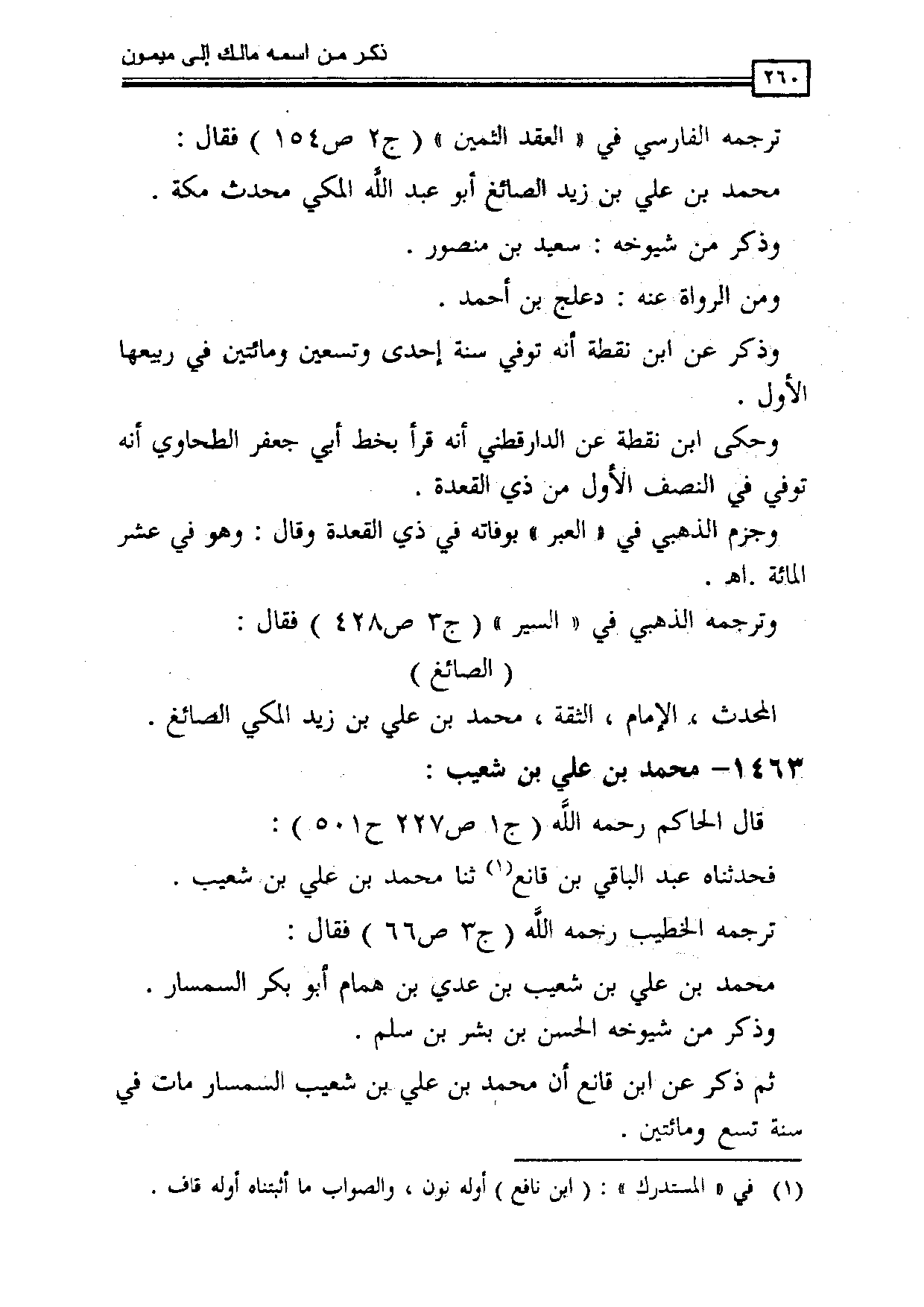 ثم ذكر عن ابن قانع أن محمد بن علي بن شعيب السمسار مات في سنة تسع ومائتين.