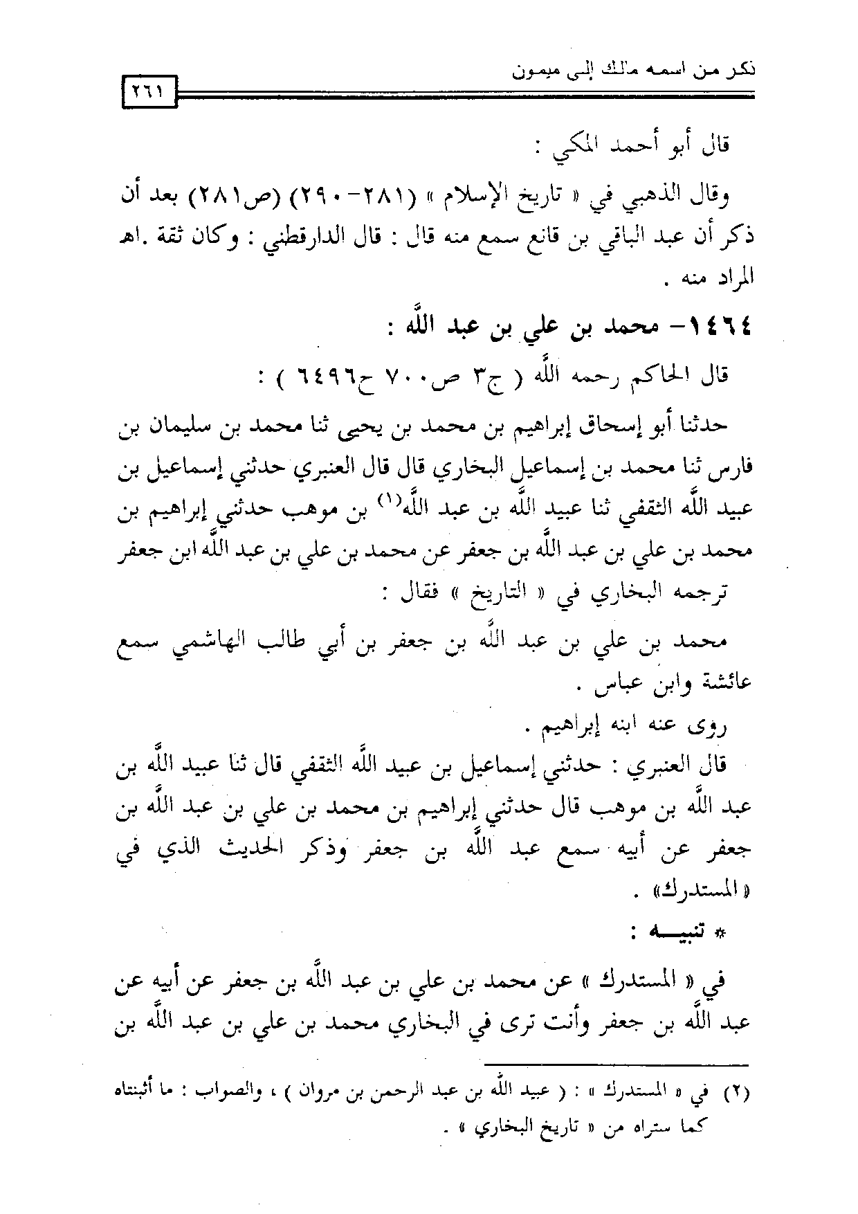 في «المستدرك» عن محمد بن علي بن عبد الله بن جعفر عن أبيه عن عبد الله بن جعفر وأنت ترى في البخاري محمد بن علي بن عبد الله بن