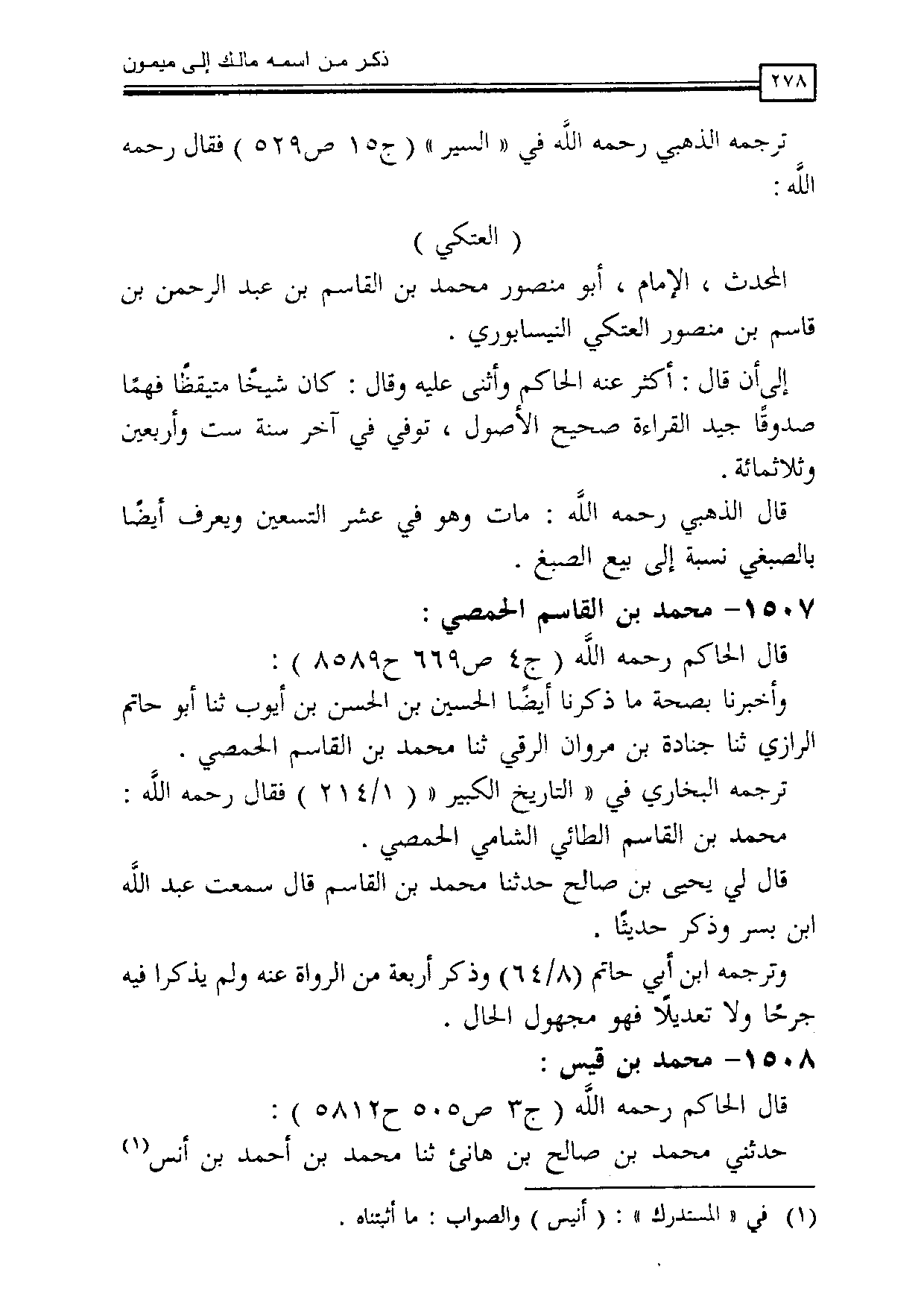 * قال الحاكم رحمه الله (ج 3 ص 505 ح 5812):