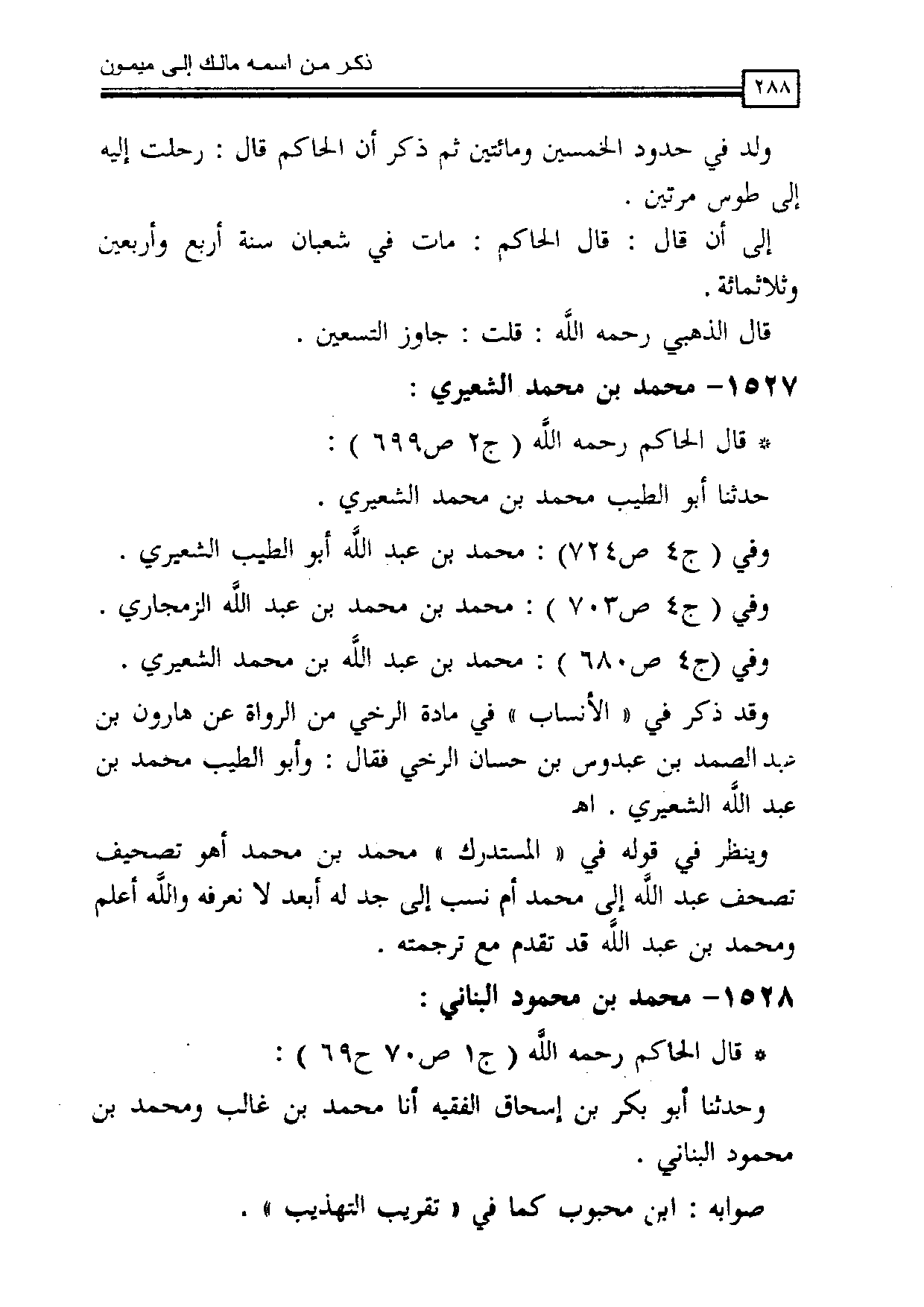 وينظر في قوله في «المستدرك» محمد بن محمد أهو تصحيف تصحف عبد الله إلى محمد أم نسب إلى جد له أبعد لا نعرفه والله أعلم. ومحمد بن عبد الله قد تقدم مع ترجمته.