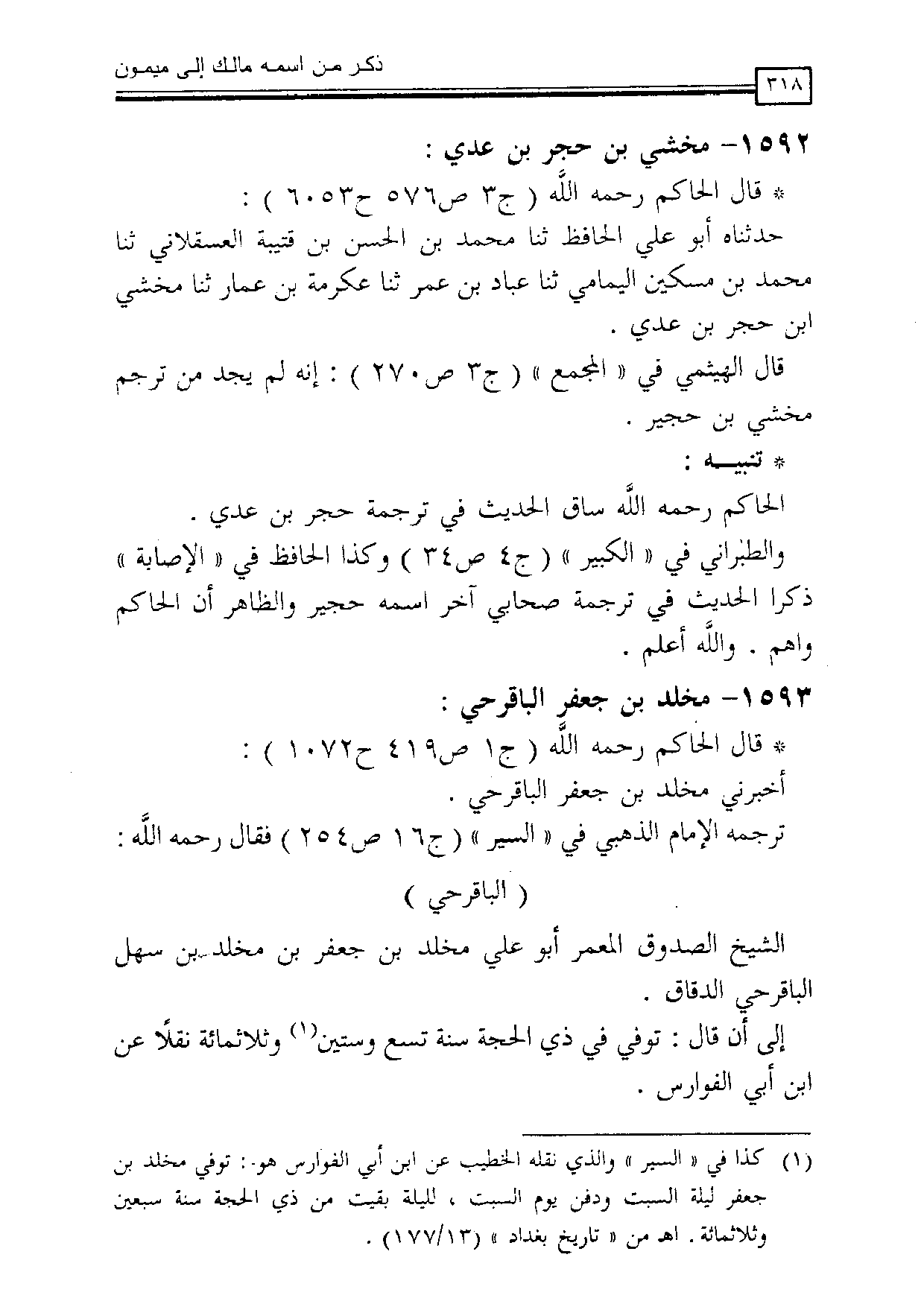 حدثناه أبو علي الحافظ، ثنا محمد بن الحسن بن قتيبة العسقلاني، ثنا محمد بن مسكين اليمامي، ثنا عباد بن عمر، ثنا عكرمة بن عمار، ثنا مخشي بن حجر بن عدي.