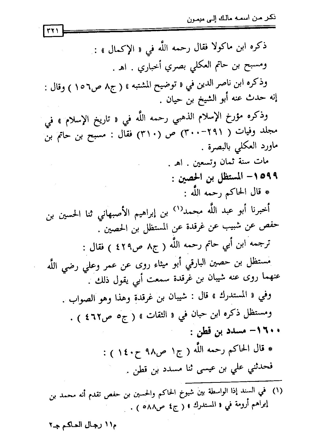 * قال الحاكم رحمه الله: